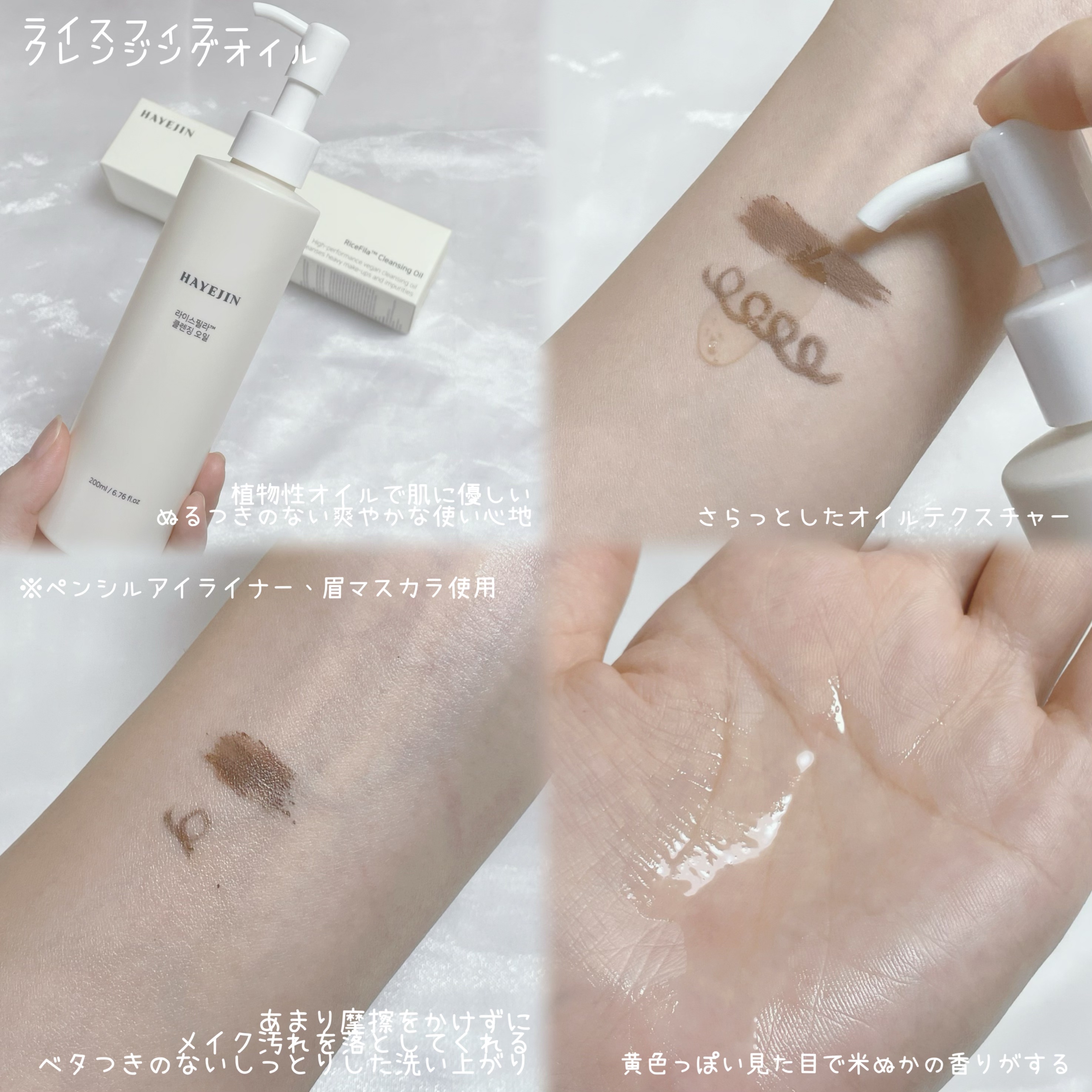 HAYEJINライスフィラクレンジングオイル米ぬかオイル配合で優しくメイクをオフできるクレンジングオイルです♪サラサラなテクスチャーでなめらかに肌に馴染ませることができます。乳化が早くて素早くメイクを落とせます!汚れはスッキリなのにつっぱらな...