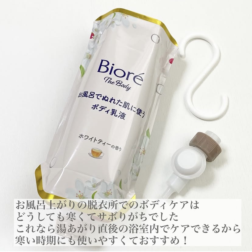 ビオレザボディさまからいただきました。お風呂でぬれた肌に使う乳液。ぬれた肌にそのまま塗るって初めてでしたが、肌にちゃんとなじんでしっとりすべすべに✨まさにうるおい密封!これからの寒い季節に暖かい浴室でそのまま保湿できるのも嬉しい♡ホワイトティ...