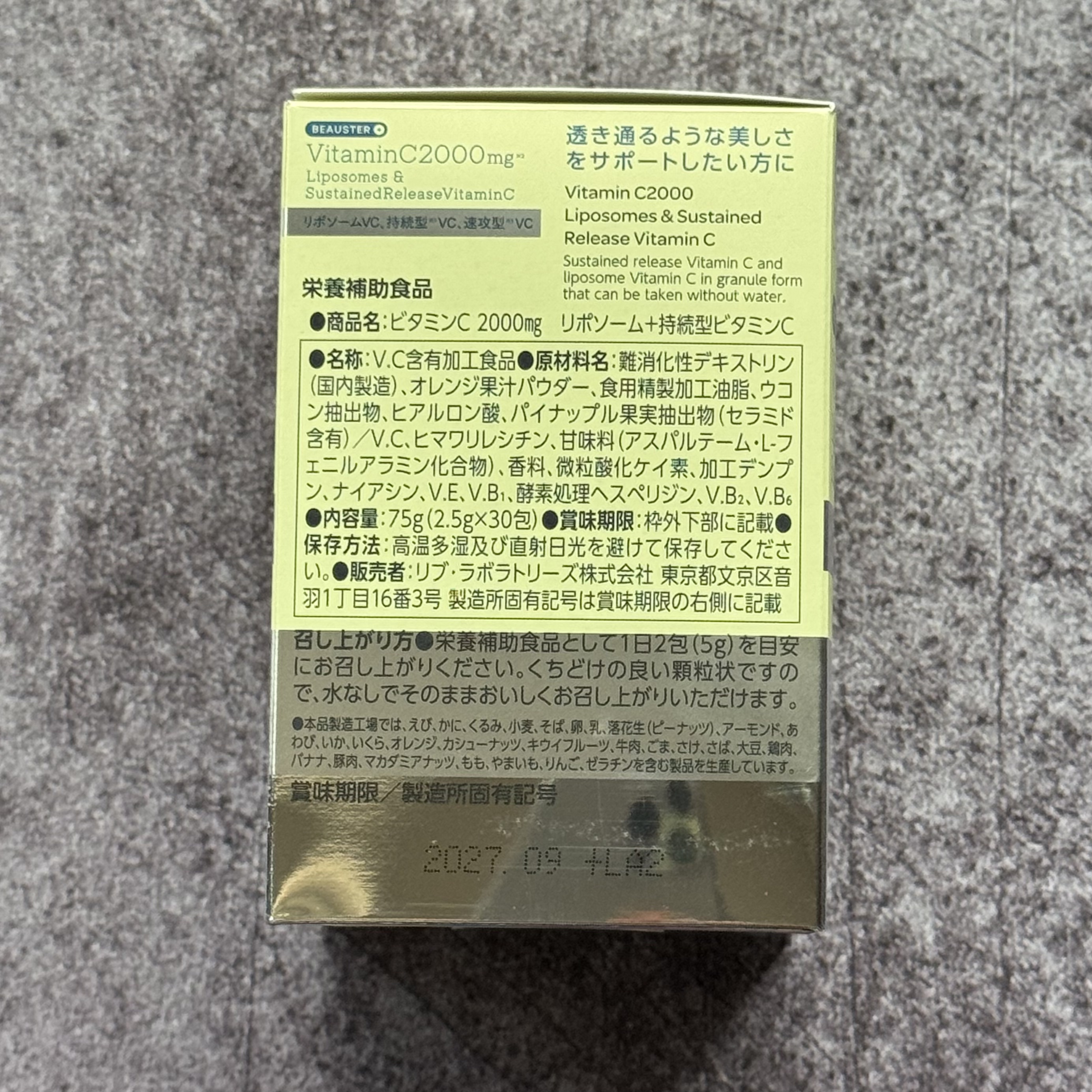 - 「ビタミンC2000 リポソーム+持続型VC」は、リポソーム型、持続型、速攻型の3種のビタミンCを組み合わせて2000mg配合。さらにセラミドなども加えた贅沢設計です。