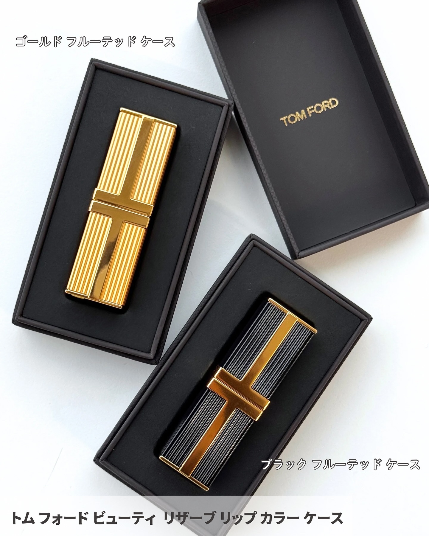- 抗えないほど官能的なエレガンスの象徴。 ラグジュアリーの本質を究めた、トムフォード最高峰リップが誕生。 トムフォードのためだけに調合されたリップオイルブレンドと革新的なグロステクノロジーを初めて搭載し、ひと塗りで唇に宿るのは、立体感あふれる濃密な色彩と艶やかな光沢。 圧倒的な存在感で視線を奪い、永遠に記憶に残る、唯一無二の唇へ。 FORMULA:トムフォードだけのために調合された「リザーブ革新的な「グロスオイルブレンド」とエンハンシングテクノロジー」を搭載。 SHADE:世界各地のアイコニックなトムフォードブティックにオマージュを捧げる5つのシェード。 CASE:アルミニウムの一枚板から削り出された、精緻な素材工学と美の芸術が融合した「コレクターズエディションケース」。(トムフォード初のリフィル対応ケース) ・限定リフィル対応ケースは、トムフォードのDNAを刻むブラック×ゴールドのフルーティングを纏い、ゴールドのTモチーフで仕上げた特別仕様。 ・強度と軽さを兼ね備えた素材アルミニウムが生む、シャープなディテールと比類なき手触り――。真のラグジュアリーは触れることで完成する、その哲学を体現し、すべてが唯一無二、トムフォードが定義する完璧な美しさをケースにも映し出します