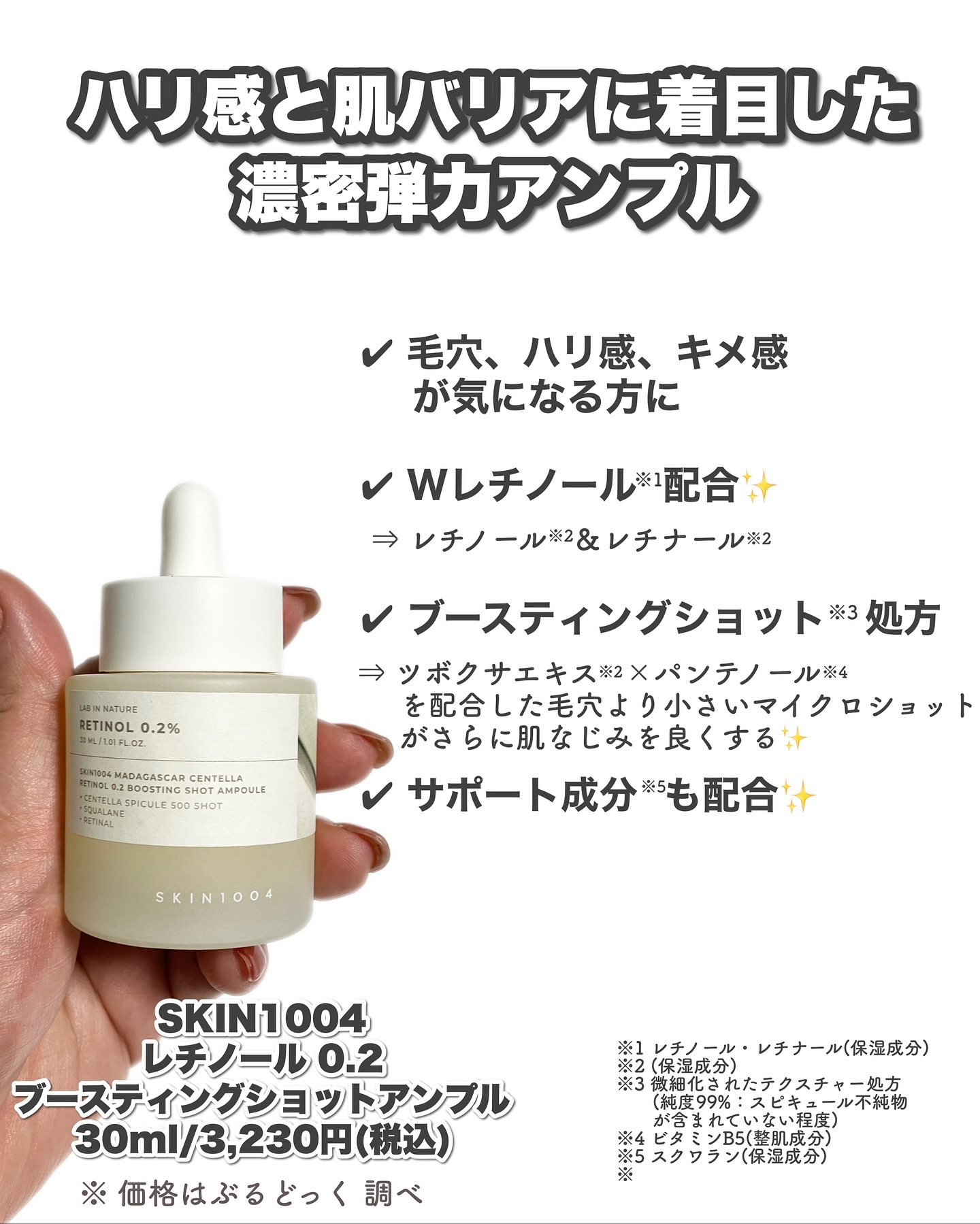 商品詳細情報SKIN1004 レチノール 0.2 ブースティングショット アンプル