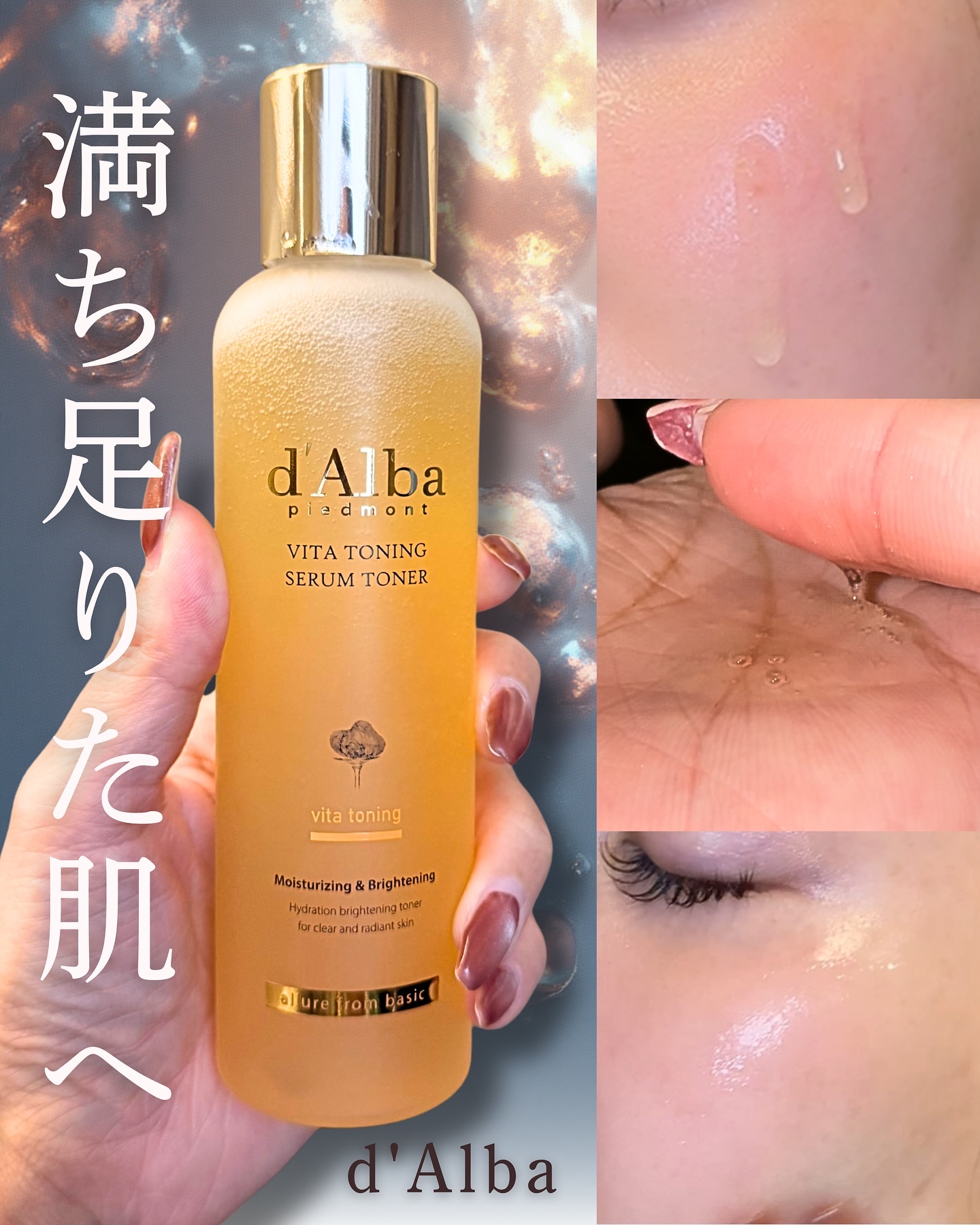 d'Albaのビタトーニングセラムトナー💓高純度のビタミンCとグルタチオンでくすみのない肌に☺️✨セラムトナーだからとろみがあってお肌うるおうー!!コットンパックするとさらに肌キメ整ってツヤピカ😍ワンタッチで開けられるキャップが地味に最高🥺🫶...