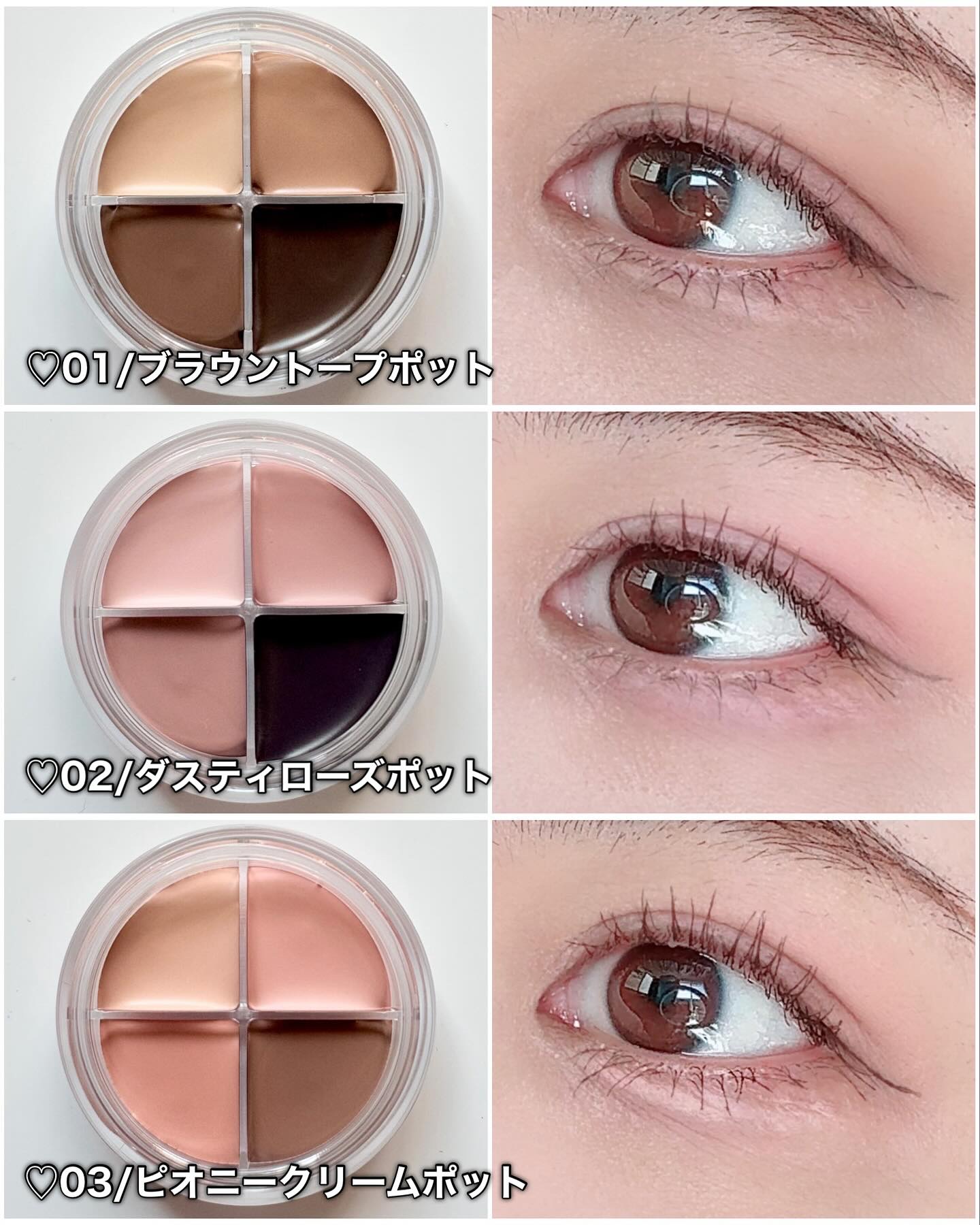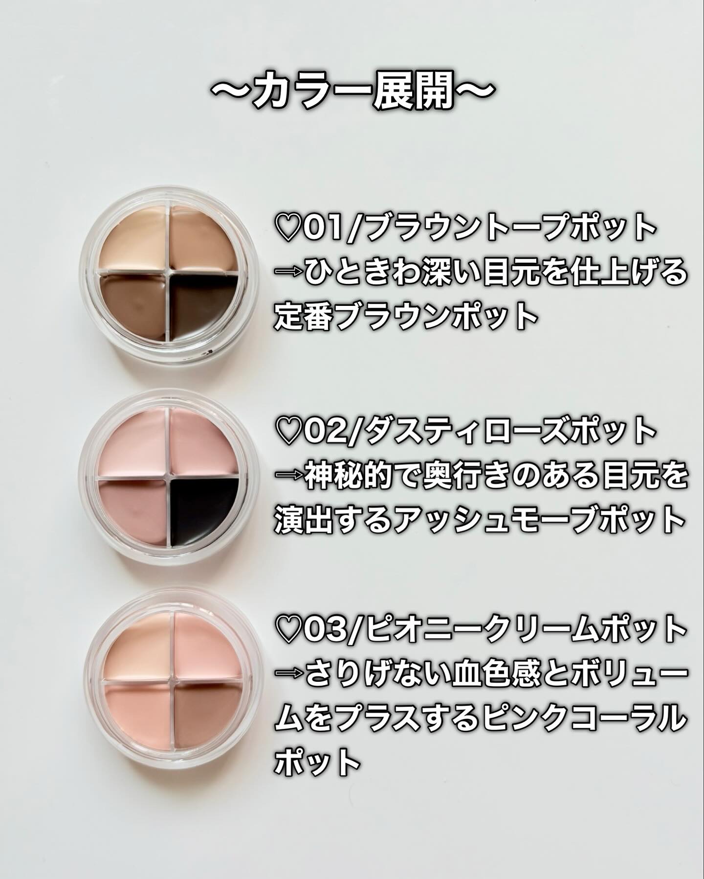 【𝒓𝒐𝒎&𝒏𝒅目元拡張ポット✎𓂃】ロムアンド新作のクリームシャドウ。もうチェックしましたか🤍?シャドウ・切開ライン、涙袋やアイライナーまで1つで4役!自然な陰影で目元をぱっちり拡張できますˎˊ˗なめらかな質感で伸びが良くて、密着感◎なじませた...