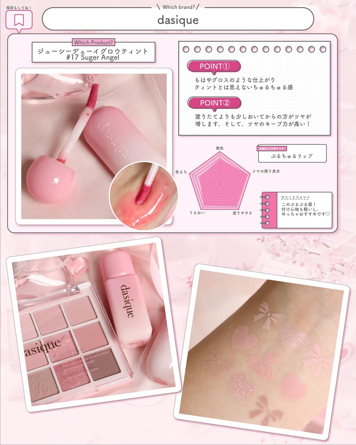 【ピンクいっぱいの”バレエコアコレクション”が登場🩷】@dasique_jpdasiqueシルキーベールブラッシュ:01SoftChiffonシャドウパレット:35LoveAngelジューシーデューイグロウティント:17SugerAngelバ...
