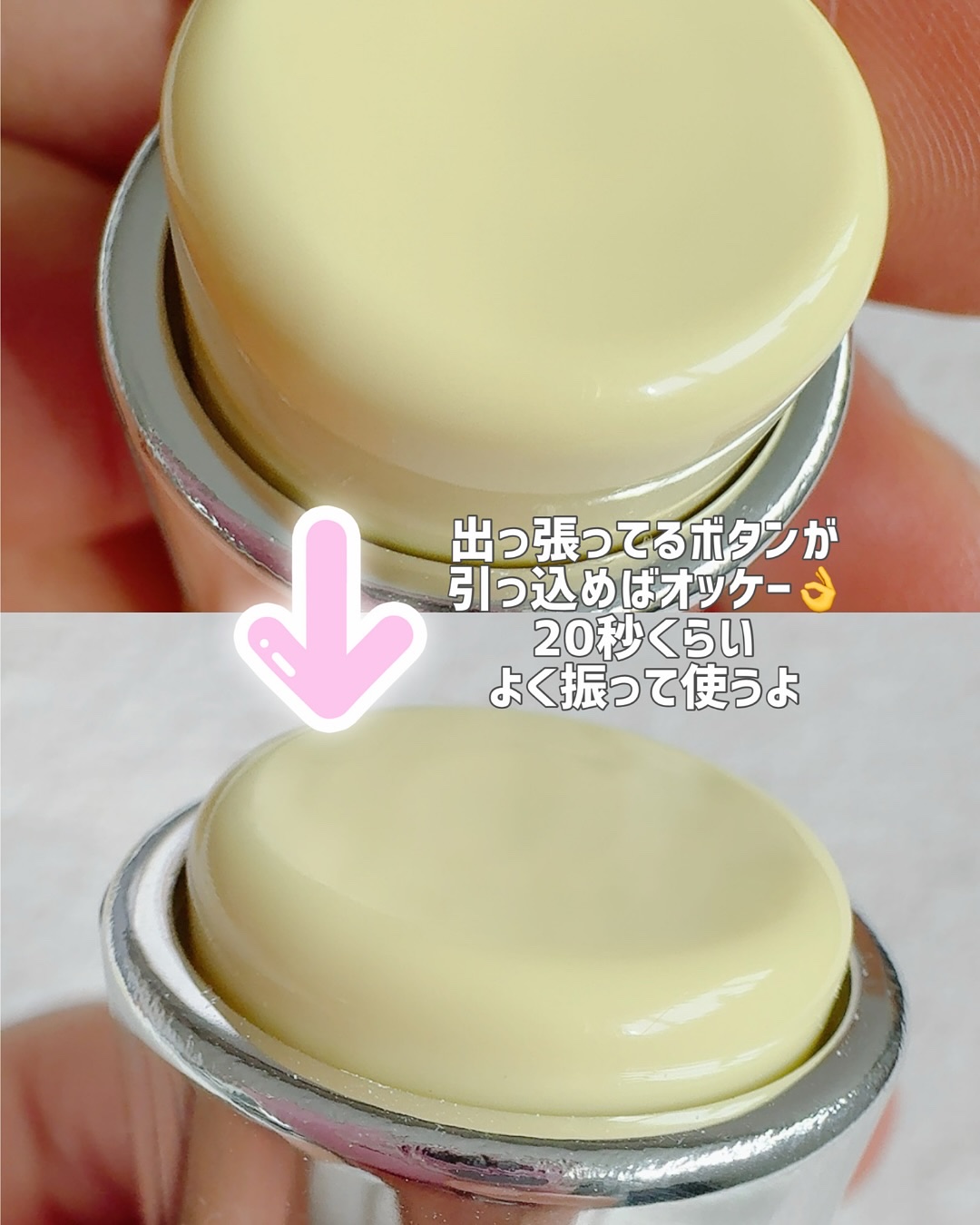 1️⃣トーンアップ下地をつける(コンシーラーの付きを良くするためと、くすみを少しでも明るく見せるため) 2️⃣オレンジの方のコンシーラーをほんの少しスポンジに取って、クマの部分【だけ】乗せる(はみ出さないようここは気をつけて!) 3️⃣ベージュの方をこちらも少し取ってポンポンポン(伸ばしすぎない、優しく色乗せる)