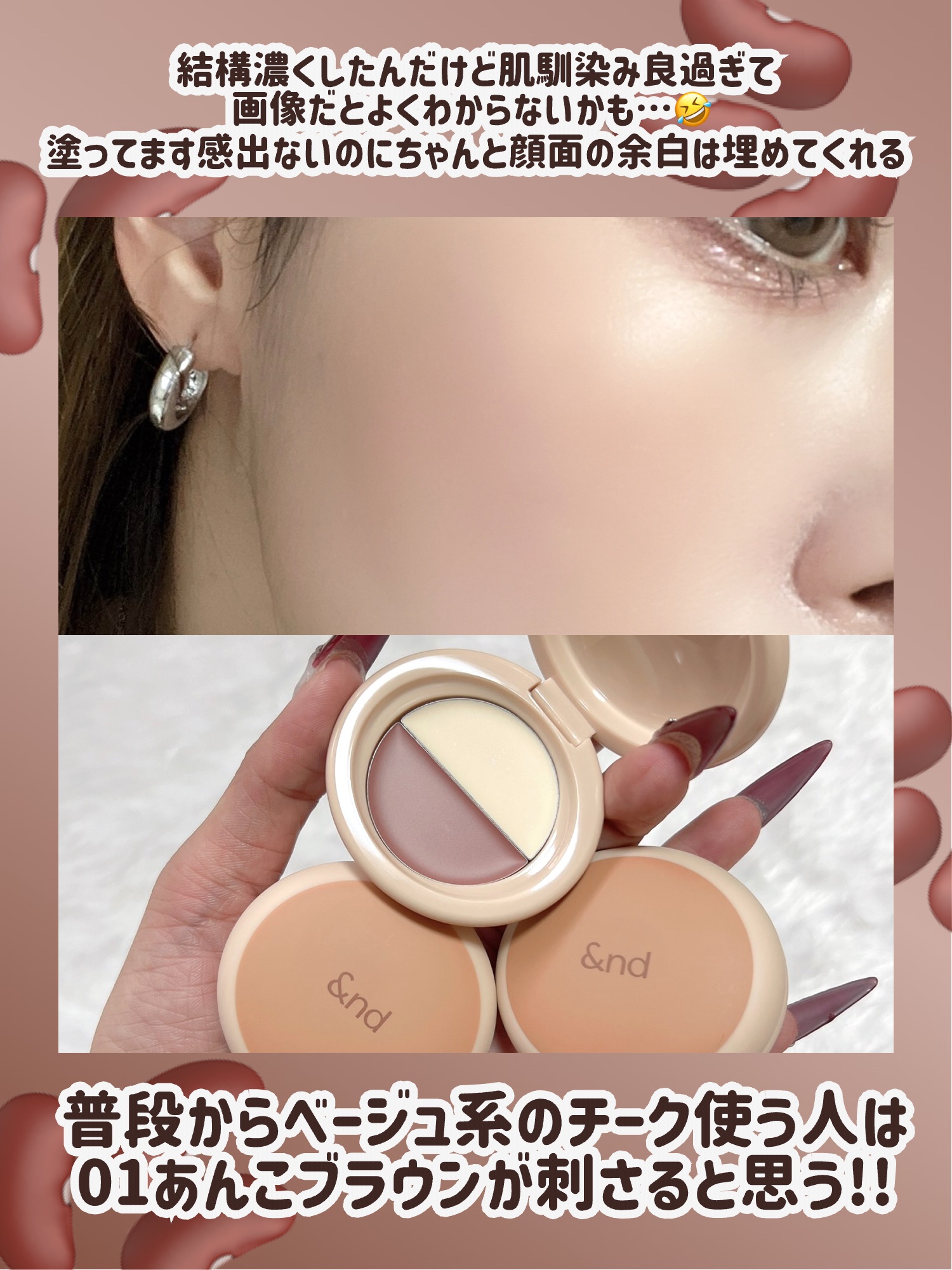 &𝗻𝗱𝗯𝘆𝗿𝗼𝗺&𝗻𝗱𝘋𝘖𝘙𝘈𝘠𝘈𝘒𝘐𝘓𝘐𝘗𝘢𝘯𝘥𝘊𝘏𝘌𝘌𝘒✍🏻😋ちっちゃいどら焼きみたいなビジュアルが可愛すぎる!アンロムのリップ&チークをパケ買いしたよ💗全3色のうち購入したのは01と02✌🏻🫘あんこブラウン上:ゴールドパール入りのミルク...