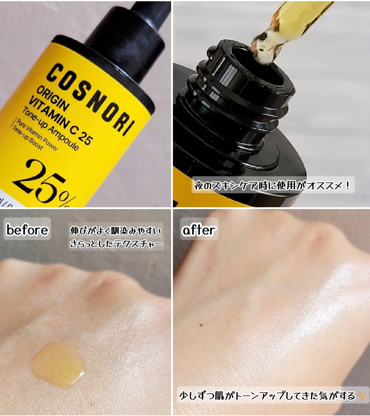 「COSNORI」さまから商品提供をいただきました。✼••┈┈••✼••┈┈••✼••┈┈••✼••┈┈••✼❤️COSNORIオリジンビタミンC25美容液イギリス産のピュアビタミンC(アスコルビン酸)を配合し、くすみが気になる肌を、透明感の...