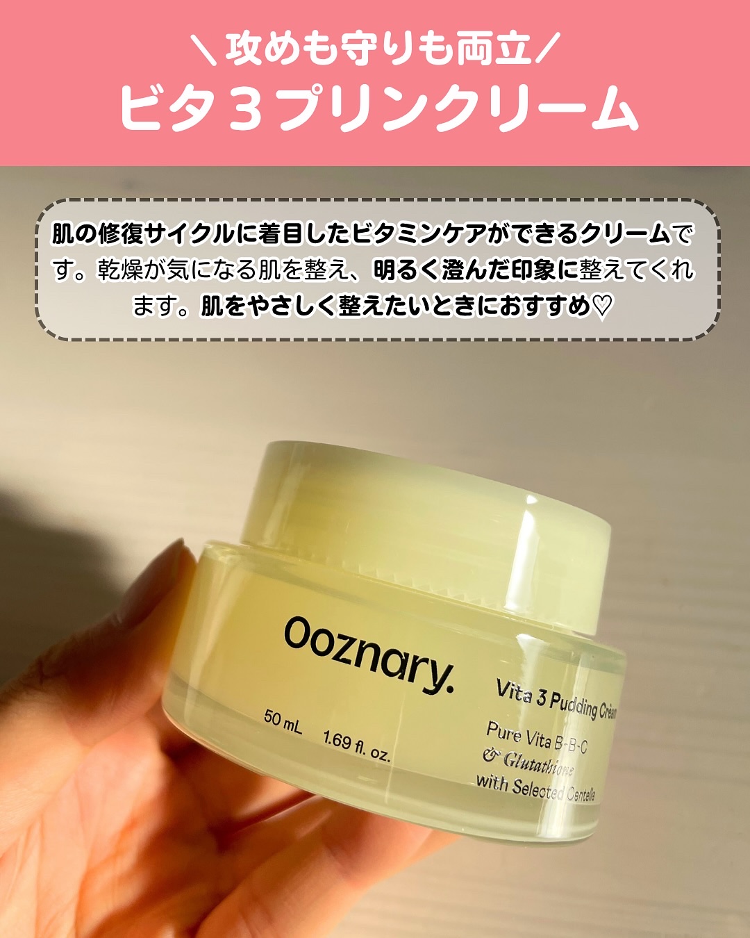 Ooznaryビタ3セラム敏感肌にも使いやすいオーズナリーだけのビタミン3種リール1千万回以上再生された話題のセラムビタミン3種+グルタチオン+マデカソサイドシナジー配合で透き通ったお肌へビタ3プリンクリーム・吸収率の高いビタミンが、キメを整...