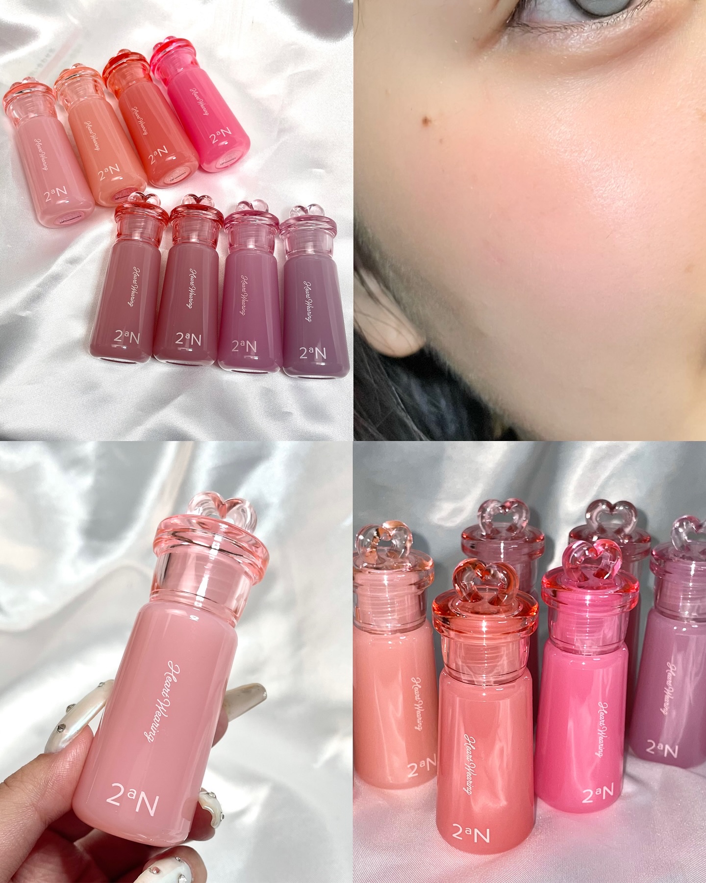 2aNHeartWearingLiquidCheekハートウェアリングリキッドチークリップのような持ち運びやすいサイズでパケも可愛いリキッドチークが新発売😃💘Qoo10で10月29日から購入できるよ✨アイドルのようなツヤ感チークで8色展開で自...