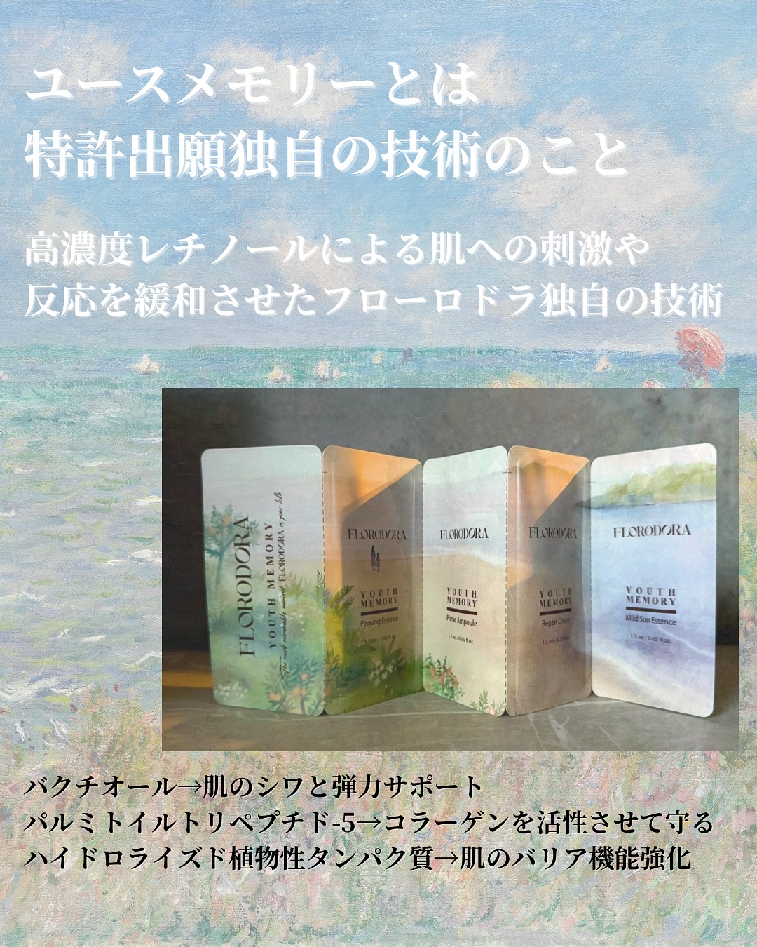 💗肌に“美しい記憶”を残すスローエイジングケア💗FLORODORA〈ユースメモリーギフトパッケージType:B〉フローロドラ独自の技術「ユースメモリー」で低刺激ながらもなめらかで上品なスキンケアタイムを演出🌸レチノールに代わる注目成分・バクチ...