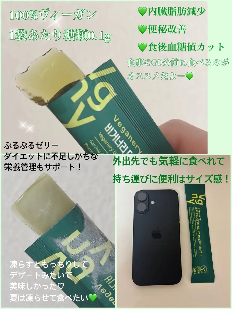 さっぱりとした甘いシャインマスカット味美味しくて手軽にダイエットサポートダルバヴィーガナリーダイエットゼリー(シャインマスカット味)4200mg冷やしてゼリーでも凍らせてシャーベットにしても美味しい👏🏻ご褒美感覚で食べられるから続けられ...