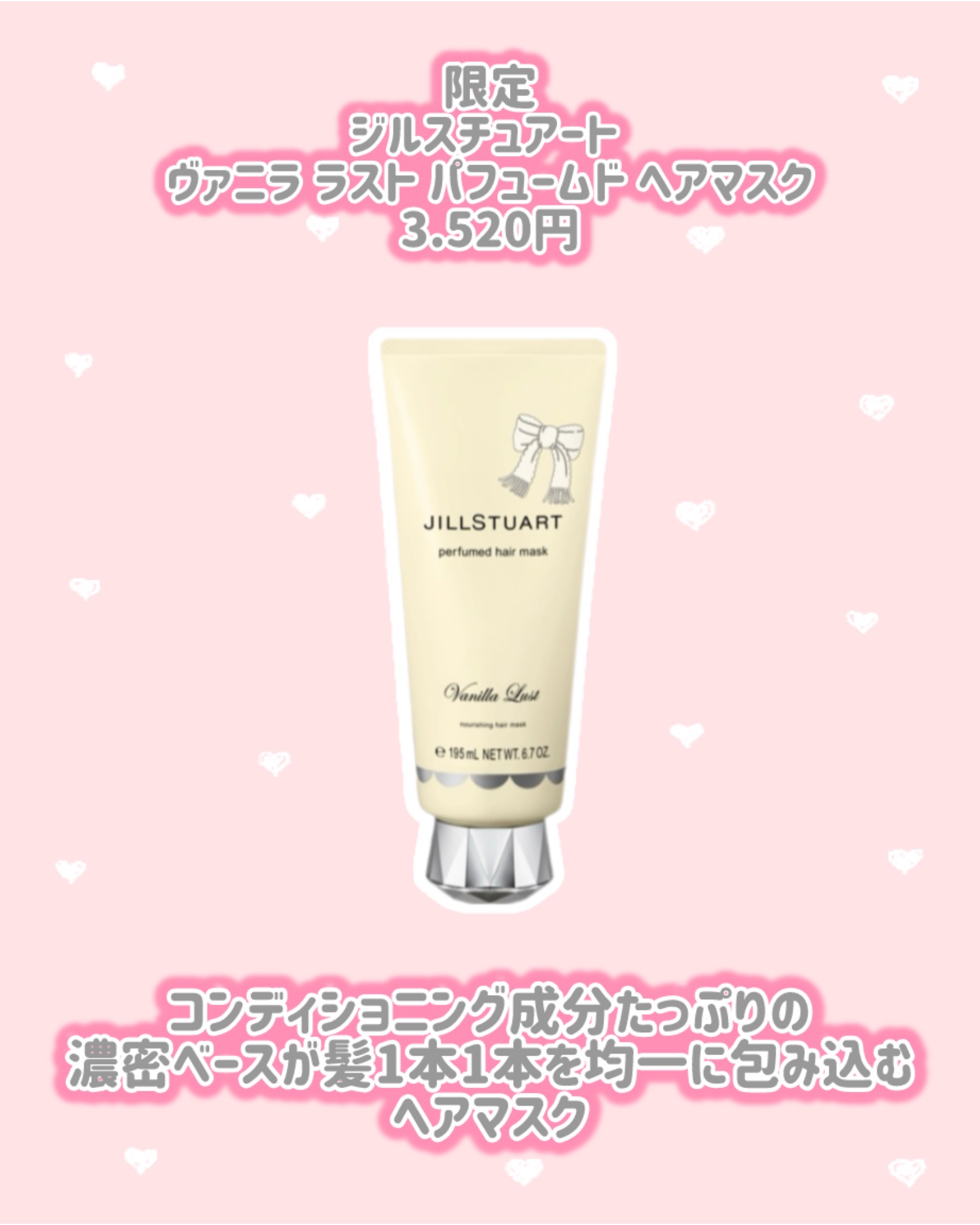 JILL STUART ジルスチュアート ヴァニラ ラスト パフュームド ヘアマスク | 3,520円 |