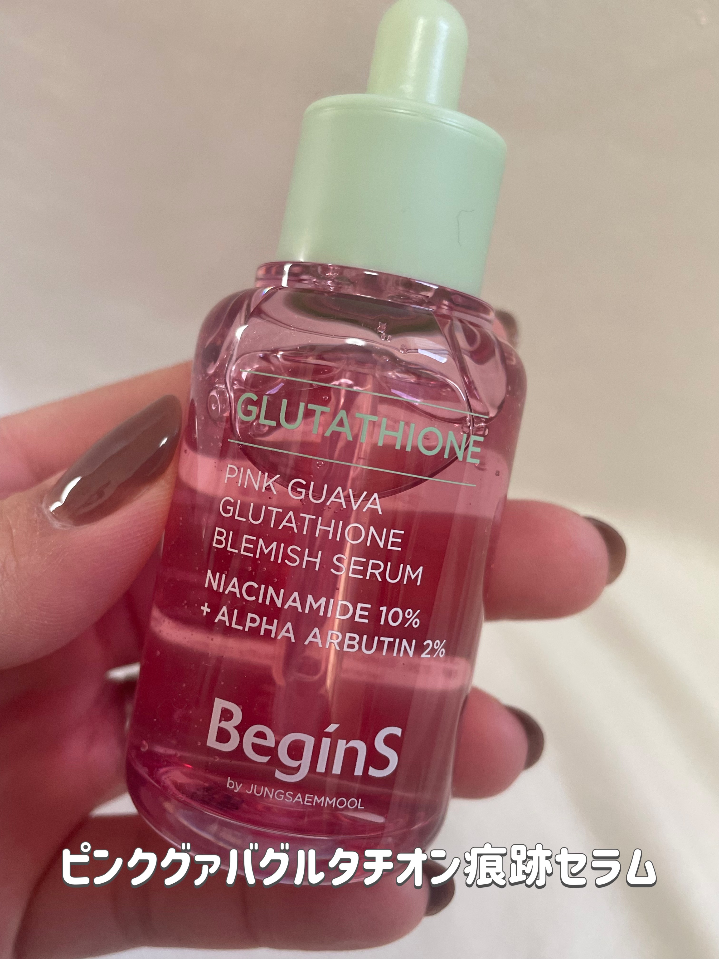 BeginSピンクグァバグルタチオン痕跡セラム100時間低温抽出した「済州産ピンクグアバ」を配合したセラム🌸ピンク色で、ほんの少しとろみのあるテクスチャー!ベタつきにくいので、朝のスキンケアにも使いやすい印象です☀️私は使っていると肌が明るく...