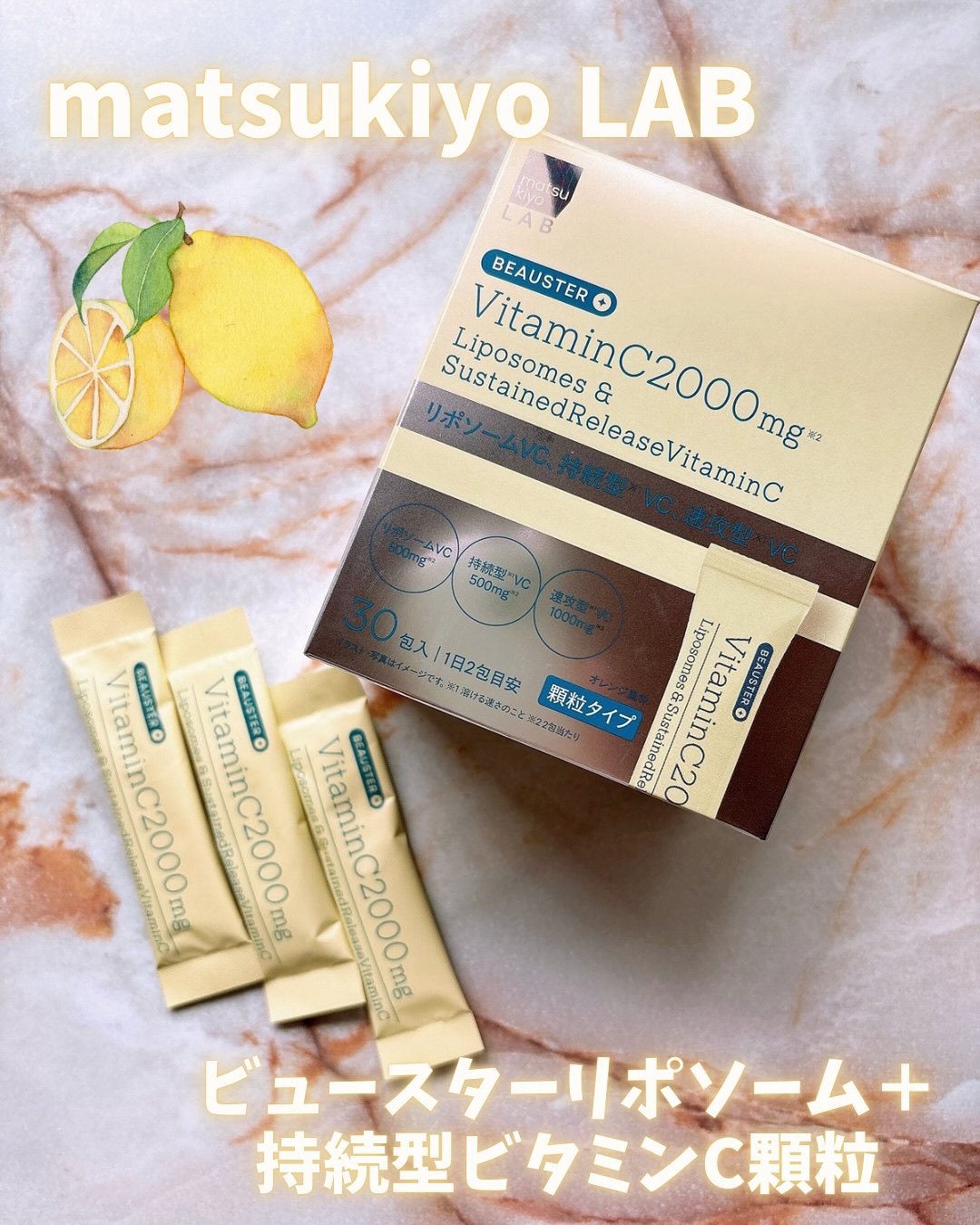 matsukiyoLAB💛リポソーム+持続型ビタミンC顆粒LIPSを通じてmatsukiyoLABさまからリポソーム+持続型ビタミンC顆粒を提供していただきました☺"BEAU(美)+BOOSTER(ブースター)”=「美しさをブーストする」とい...