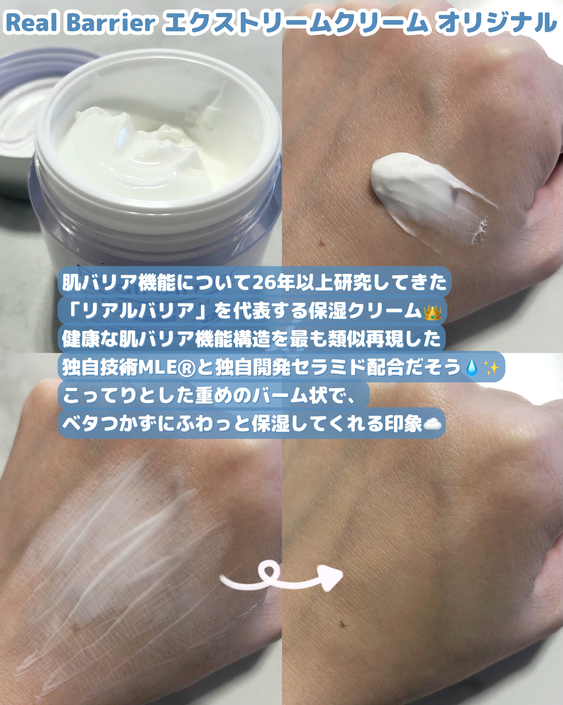 保湿ケア×肌バリアケア🫧肌悩みの原因の肌バリア崩れもケアできる◎💙RealBarrierリアルバリアエクストリームクリームオリジナル50ml肌バリア機能について26年以上研究してきたリアルバリアを代表するクリーム✨️健康な肌バリア機能構造を最...