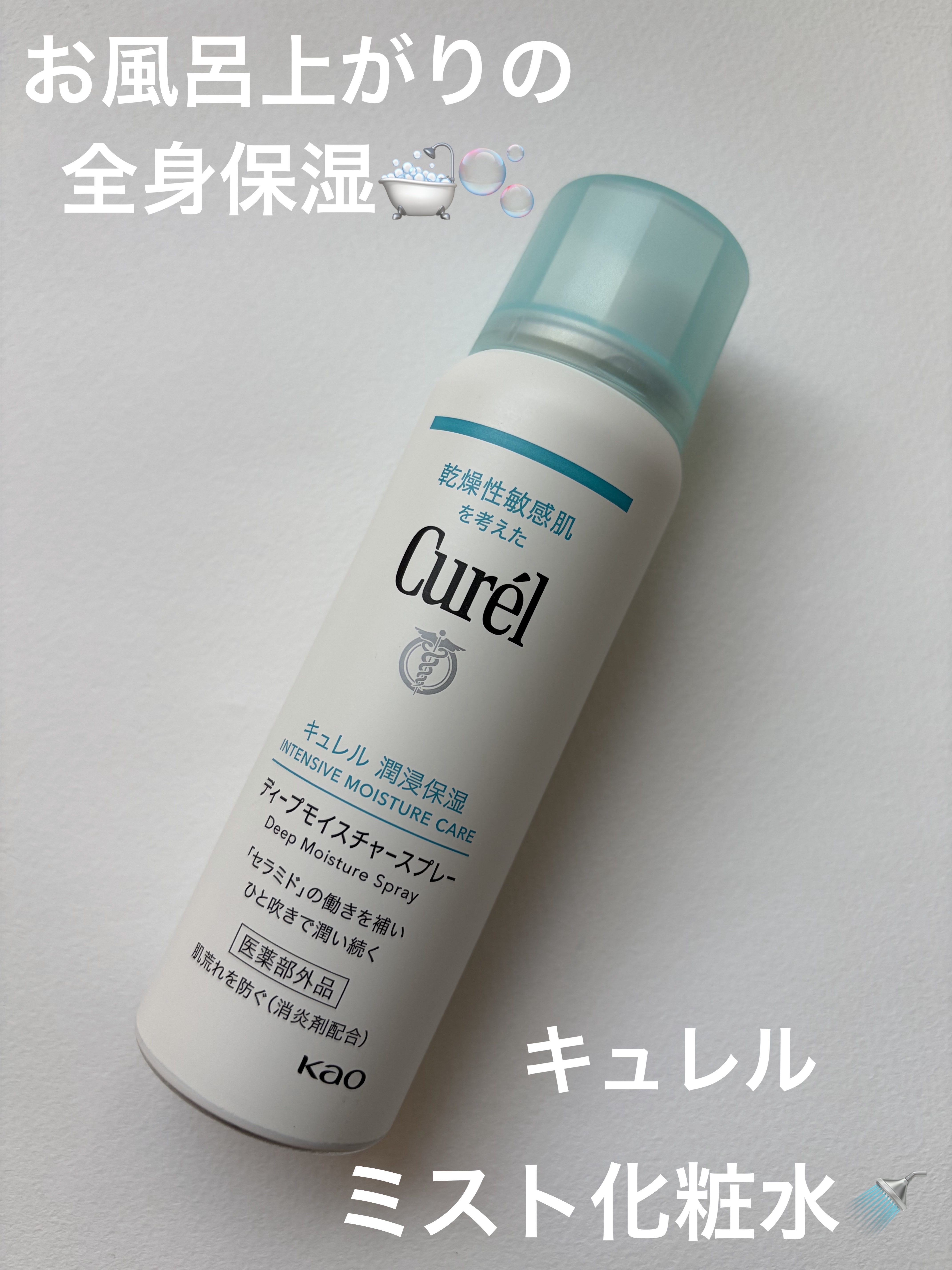 - 【敏感肌用】 微細化したセラミド機能成分*が肌の奥(角層)まで浸透。 ひと吹きで潤ったやわらかな肌に保ちます。 *ヘキサデシロキシPGヒドロキシエチルヘキサデカナミド ●消炎剤配合(有効成分)配合。肌荒れを防ぐ。 ●潤い成分(ユーカリエキス)配合。 ●ケアしづらい背中や腰など、全身に。 ●一日中、顔やからだにいつでもどこでも潤い補給。 お風呂あがりに。メイクの上から。お子さまのデリケートな肌にも。 (医薬部外品) 商品に関するお問い合わせ 受付時間9:00~17:00(土曜・日曜・祝日除く) *製品の誤飲・誤食など緊急の場合は、受付時間外でもお電話ください キュレル:0120-165-698