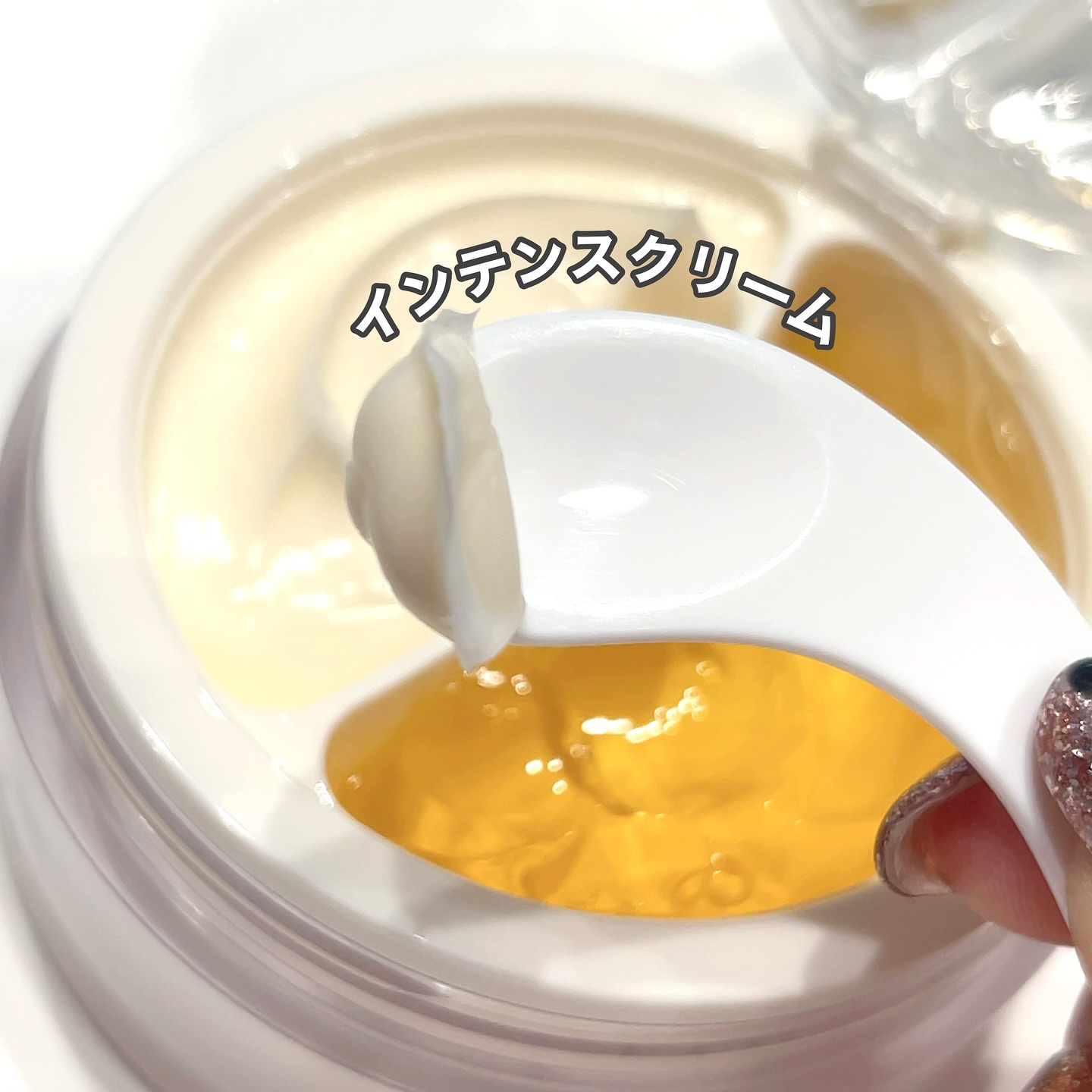 - アクサセラムとインテンスクリームのデュアル・フォーミュラで肌のタイプやコンディションに合わせて 比率を調節してカスタマイズ・ケアします。 ・アクアセラム:ヒアルロン酸、パンテノール、ツボクサエキス*が含まれた、さっぱりとした使用感で肌に水分を与え肌のキメを整えます。*ヒアルロン酸・パンテノール・ツボクサエキス(いずれも保湿成分) ・インテンスクリーム:イタリア産ホワイトトリュフ*が含まれた、もっちりした使用感で肌にうるおいを与えツヤのあるもち肌へ導きます。*ツベルマグナツムエキス(保湿成分) イタリアヴィーガン認証V-LABEL取得 皮膚低刺激テスト済み *全ての方に皮膚刺激が発生しないということではありません。 【使い方】 1. 洗顔後、スパチュラで肌のコンディションによって、セーラムとクリームを適量を取り、 ミックスしてから顔全体に優しく塗り広げ、 吸収させます。※ 必要に応じて、アクアセラムとインテンスクリームは単品でも使用できます。 【使用上の注意】 お肌に異常が生じていないかよく注意して使用してください。化粧品がお肌に合わないとき即ち次のような場合には、使用を中止してください。そのまま使用を続けますと、症状を悪化させることがありますので、皮ふ科専門医等にご相談されることをおすすめします。 (1)使用中、赤味、はれ、かゆみ、刺激、色抜け(白斑等)や黒ずみ等の異常があらわれた場合 (2)使用したお肌に、直射日光があたって(1)のような異常があらわれた場合