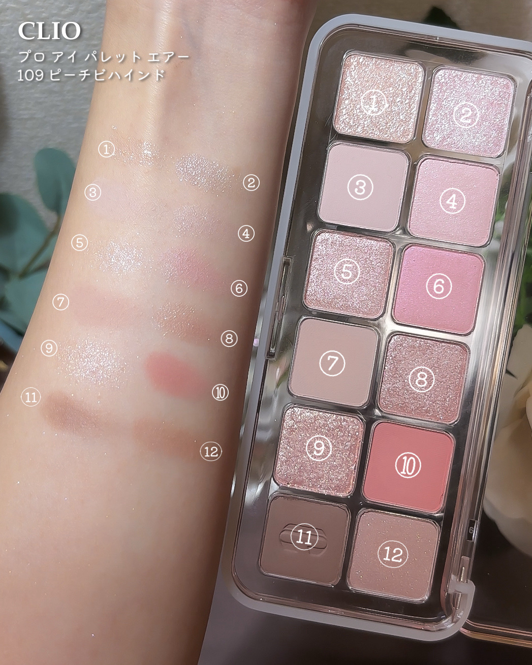- 軽やかテクスチャーが目元に密着し、抜け感のある色使いが楽しめるデイリーパレット <101 ローズダイアリー(ROSE DIARY)> オーナメントを飾り付けたローズツリーのようにほのかに輝くウォームローズピンクカラー(イエベ秋)。 <102 ミュートアーカイブ(MUTE ARCHIVE)> 少女たちのピンキーなホームパーティームードを盛り込んだクールでヌーディーなミューテッドモブカラー(ブルべ夏ミュート)。 <103 バニラヘイズ(VANILLA HAZE)> 焼きたてのジンジャークッキーのように暖かく香ばしいウォームミュートカラー(イエベ秋ミュート)。 <104 GHR ピンク(GYEONGHOERU FLOWER FESTIVAL)> 春の日の美しく優雅な色を詰め込んだピンクカラーパレット。イエベ春&ブルベ夏におすすめのパレットです。 <105 DSG バイオレット(DEOKSUGUNG STONE WALL ROAD)> ほんのりピンクがかった柔らかなモーブカラーパレット。ブルベ夏&ブルベ冬におすすめのパレットです。 <106 DBG コーラル(GYEONGBOKGUNG STROLL)> 明るい日差しの色を取り入れたデイリーなコーラルカラー。イエベ春&ブライト秋におすすめのパレットです。