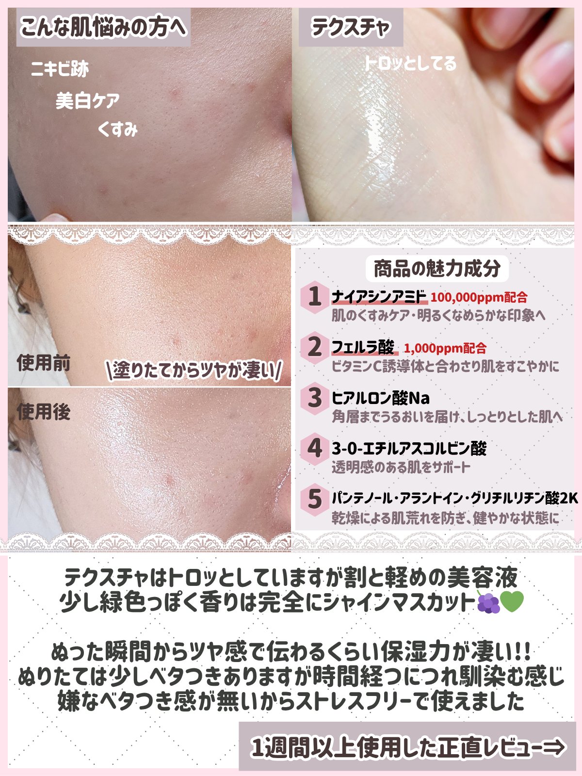 | すこしとろみのあるテクスチャーで、伸び肌馴染み共に◎べとつかないけどしっとり保湿してくれます! | 詳細を見る | ||