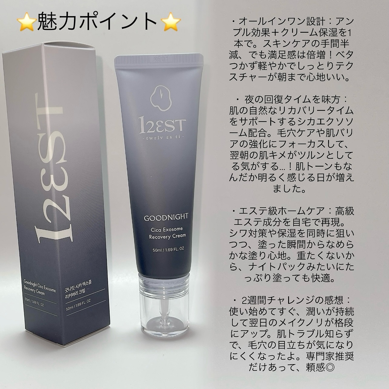 🫧12EST グッドナイトシカエクソソームリカバリーアンプルクリーム🌙寝ている間に“肌コンディション”を整える夜ケアクリーム🫧12EST〈グッドナイトシカエクソソームリカバリーアンプルクリーム〉高機能アンプル+リカバリークリームがひとつになっ...
