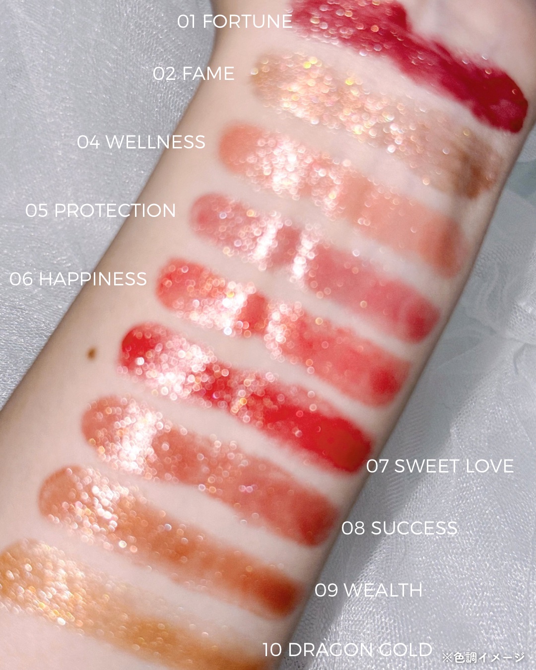 - <商品特長> ●どの角度からも繊細な煌めきを感じる唇へ ダイヤモンドホワイトとゴールドの超微粒子パール*を贅沢に配合。 煌めくグリッターレイヤリングでどの角度から見てもまばゆい輝きを放つ美唇に仕上がります。 グロッシーバームが唇へピタッと密着するため、ひと塗りで立体感のあるボリューミィなぽってり肉厚唇を叶えます。 *合成フルオロフロゴパイト/ ホウケイ酸(Ca/Al) #10は合成フルオロフロゴパイトのみ #10のみダイヤモンドホワイトのラメを使用。 その他の色は、ダイヤモンドホワイトとゴールドのラメを使用しています。 ●透明感あふれるクリアな光沢感 繊細なきらめきとピュアな彩りを叶えるリップカラー。 とろけ出すうる艶感が、グリッターの輝きをさらに美しく引き立てます。 ●リップオイル効果でぷるぷる唇続く 3種のリッチなリップケア成分*を配合。 唇にうるおいを与え、乾燥や皮むけを防ぎながら、しっとりなめらかな仕上がりを叶えます。 べたつかず、たっぷりの水分感を保ちながらも軽さを感じる使用感を実現。 リップクリームのように持続する高い保湿力があり、つけたてのツヤとうるおいを長時間キープします。 ・クルエルティフリー(動物実験をしていない) * シア脂・ババス油・ビタミンE(酢酸トコフェロール)/全て保湿