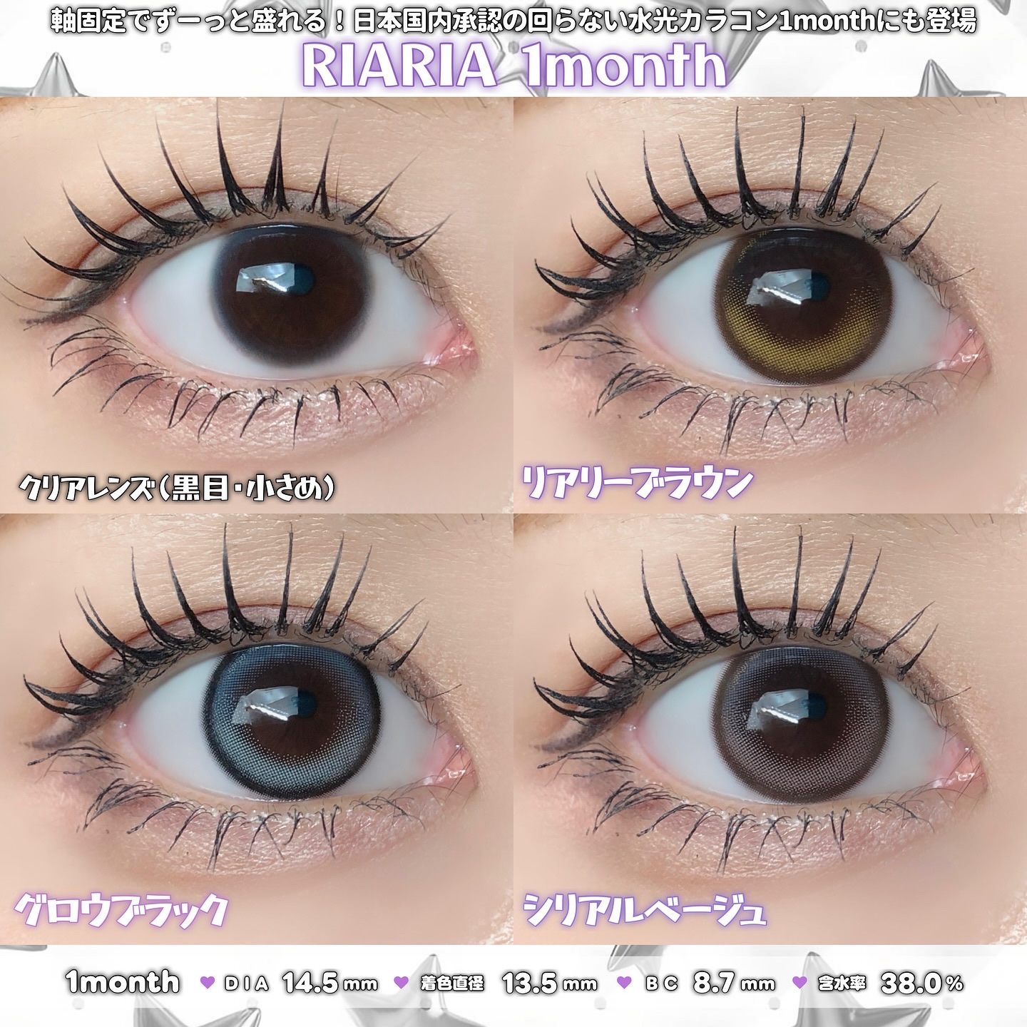 💜米澤りあちゃん×キャンマジコラボカラコン💜回らない水光"RIARIA"が1monthになったよ🪄︎︎✨RIARIA#PR@candymagic_official1monthDIA14.5mm着色直径13.5mmBC8.7mm含水率38%デザ...