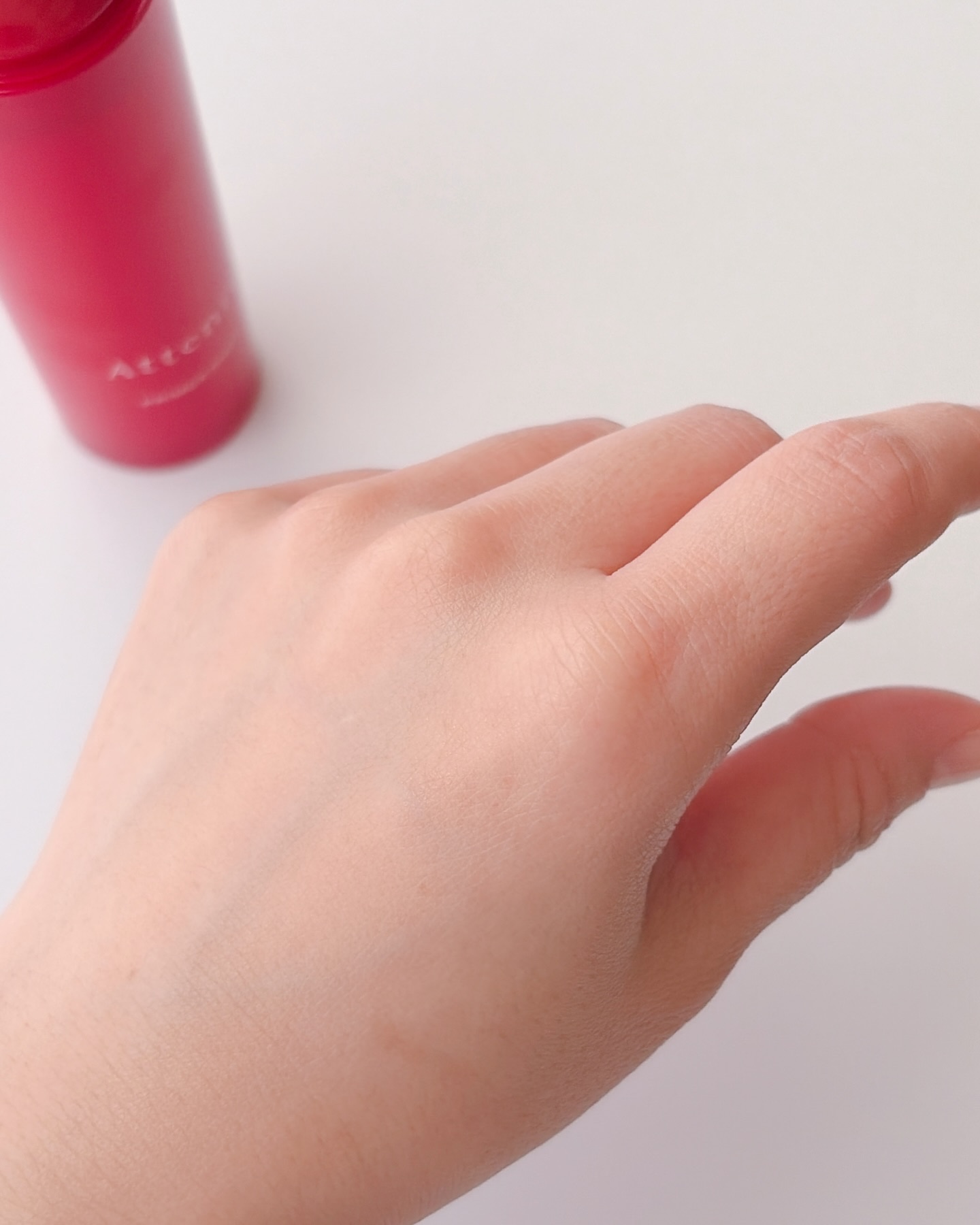 | スルスルっと伸びて、肌になじむとほんのりツヤ感を感じます。 後肌はさらり。 | 詳細を見る | ||