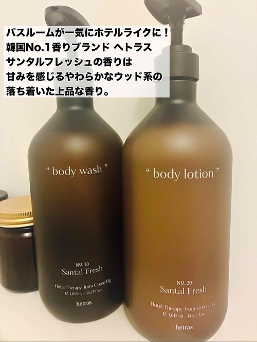 ヘトラス⟡ホテルセラピーボディウォッシュ/ボディローション韓国で1位🥇国内でも大人気のフレグランスブランド、ヘトラスのボディケアシリーズ❕今回使用したのはNo.20サンタルフレッシュスパイシーな甘さ控えめフローラル系で、メンズも使いやすい香り...