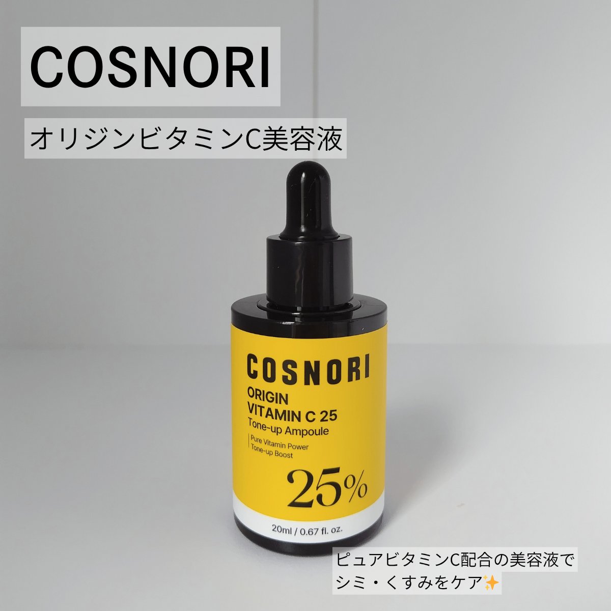 COSNORI様よりいただき使用です。COSNORIオリジンビタミンC25美容液イギリス産のピュアビタミンC(アスコルビン酸)を配合し、くすみが気になる肌を透明感のあるいきいきとした印象に導いてくれる美容液。夜の化粧水の後に使うよ。さらっとし...