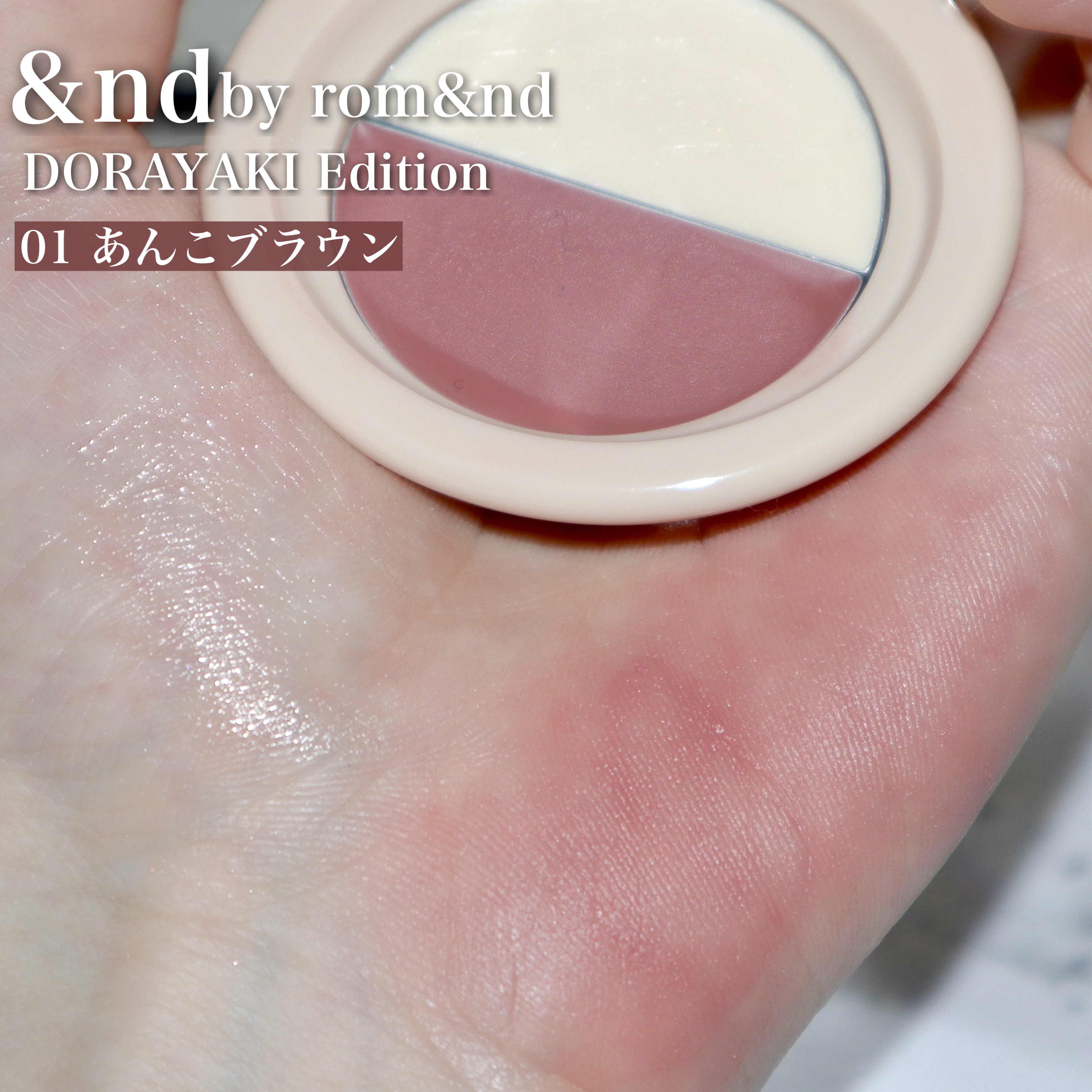 - 「rom&nd」とローソンが手掛ける「&nd by rom&nd(アンド バイ ロムアンド)」から、 ローソンの人気スイーツブランド「ウチカフェ」とのコラボアイテムが登場! どら焼きをイメージしたマルチパレットは、 リップやチーク、ハイライト、コンシーラーとマルチに使える優れもの。 見た目もまるでスイーツのようなキュートなフォルムで、ポーチに入れておきたくなる可愛さです。
