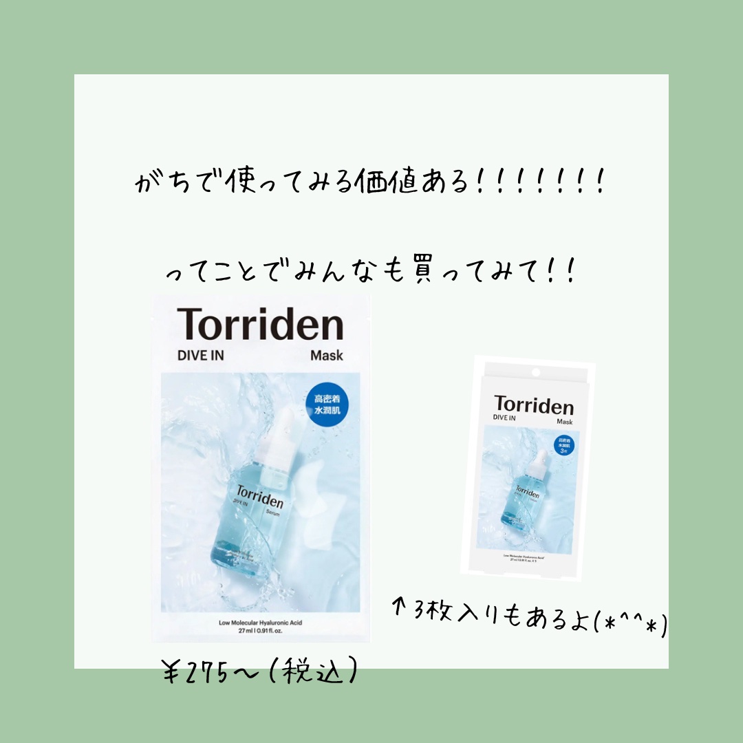 Torriden トリデン ダイブインマスクパック | 275円〜 |