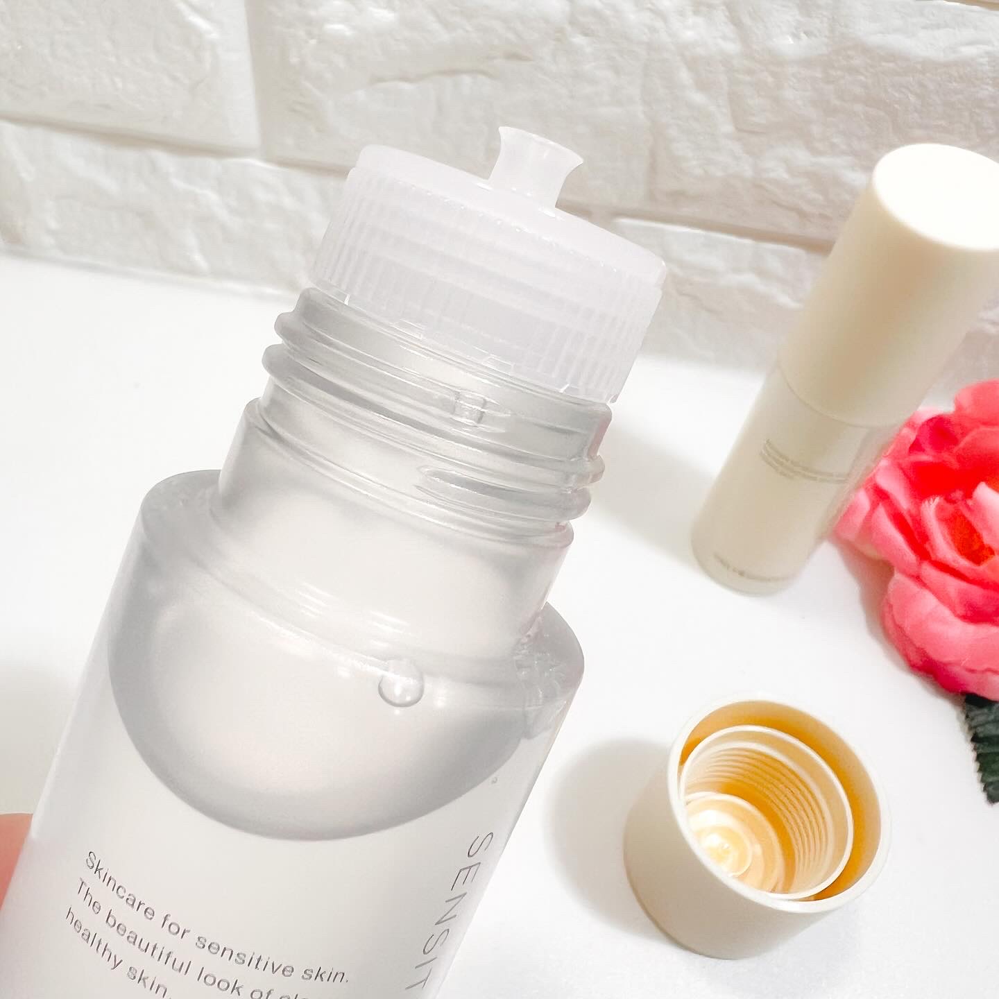 人気のクレンジングウォーターが、使いやすいポンプタイプになってリニューアル! 今回のリニューアルで、使うときの手間が減って、ますます便利になりました。 デザインもクリアなボトルにピンクのラインでセンスを感じますね! 透明でサラリとしたテクスチャー。 コットンに2、3プッシュ出して肌を拭き取ると、耐水性のアイライナーも一度で落ちてくれました。 しっとりした使い心地で化粧水いらず。 短時間で簡単にメイクが落とせるだけでなく、化粧水の役目までしてくれるので疲れている日や時間のない時にも便利です。