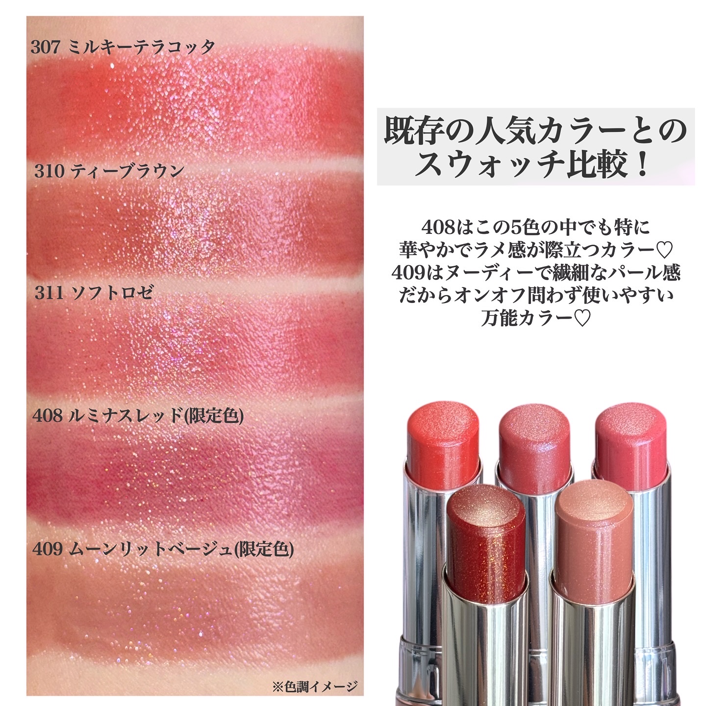 特に既にSNSでバズっていたものやバズりを確信したカラー6色をレビューしました🥺💓 輝きや高保湿のリップケア力、ボリュームアップというトリプル効果はそのままに、ヒアルロン酸とチェリー オイルが配合された自然由来の新処方に。 ヌードからモーヴ、ブリックからコーラル、そしてレッドトーンまで幅広い24色のカラーバリエーション。 そしてクラシック、インテンス、シマー、ホログラフィックという4つの質感! どれもめちゃくちゃ可愛くて全部揃えたくなっちゃう!誰でも得意なカラーが見つかるカラバリです◎ マスク生活が終わったらいち早く使いたいリップです💄