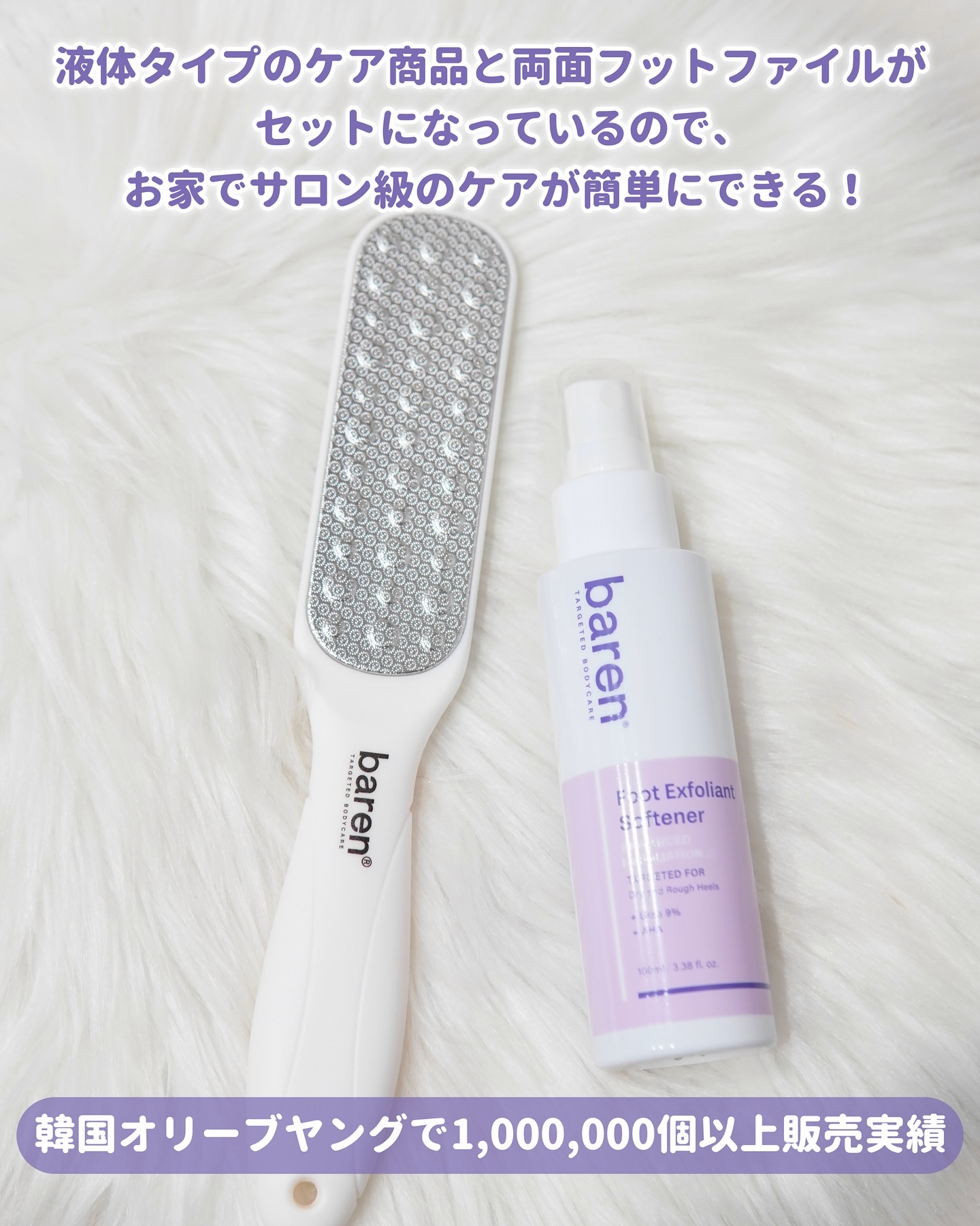 Baren様から提供いただきました。足角質消しホームセットサロン級のケアが自宅で簡単に😍スプレータイプを塗布したあと1分待ってファイルで削って整えるだけだから誰でも簡単に使えちゃう🍒メガ割期間にお得に購入できるよ🎶#足にはバレン#角質リムーバ...