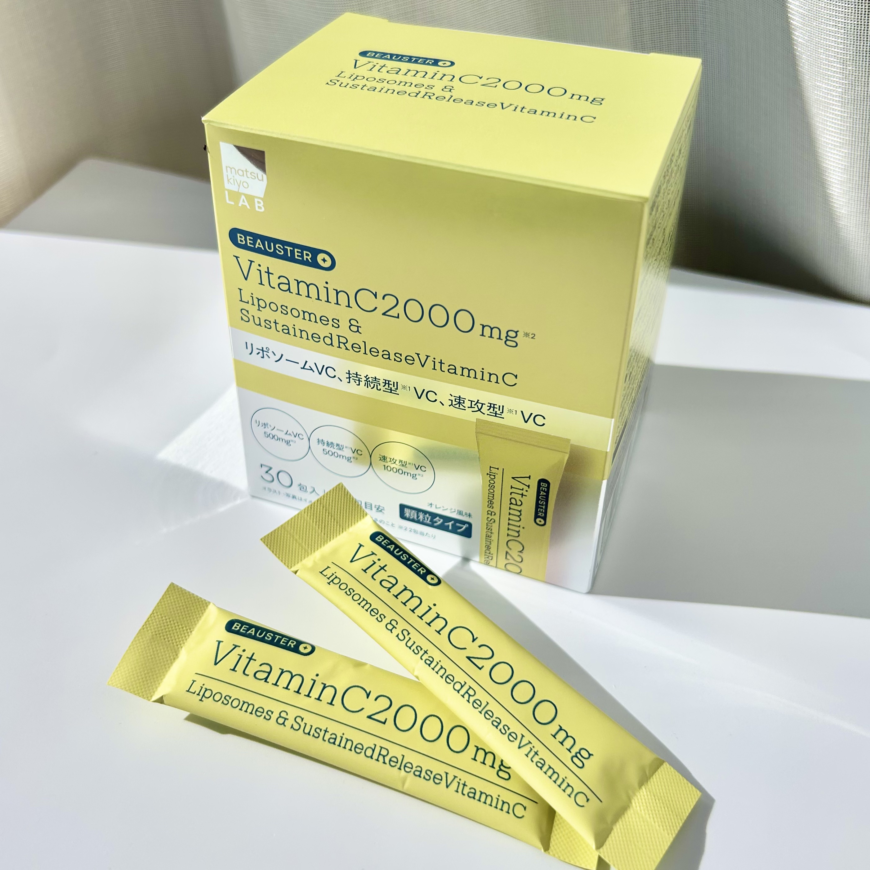 - 「ビタミンC2000 リポソーム+持続型VC」は、リポソーム型、持続型、速攻型の3種のビタミンCを組み合わせて2000mg配合。さらにセラミドなども加えた贅沢設計です。