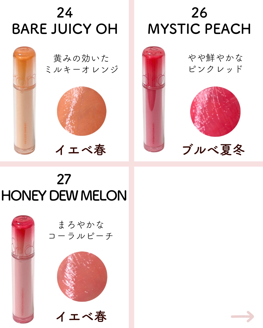 7/19販売開始!✼••┈┈••✼••┈┈••✼••┈┈••✼••┈┈••✼rom&ndザジューシーラスティングティント26ミスティックピーチ27ハニーデューメロン28スノーストロベリー29ジョソンフィグ30ベアマロン✼••┈┈••✼••┈┈...