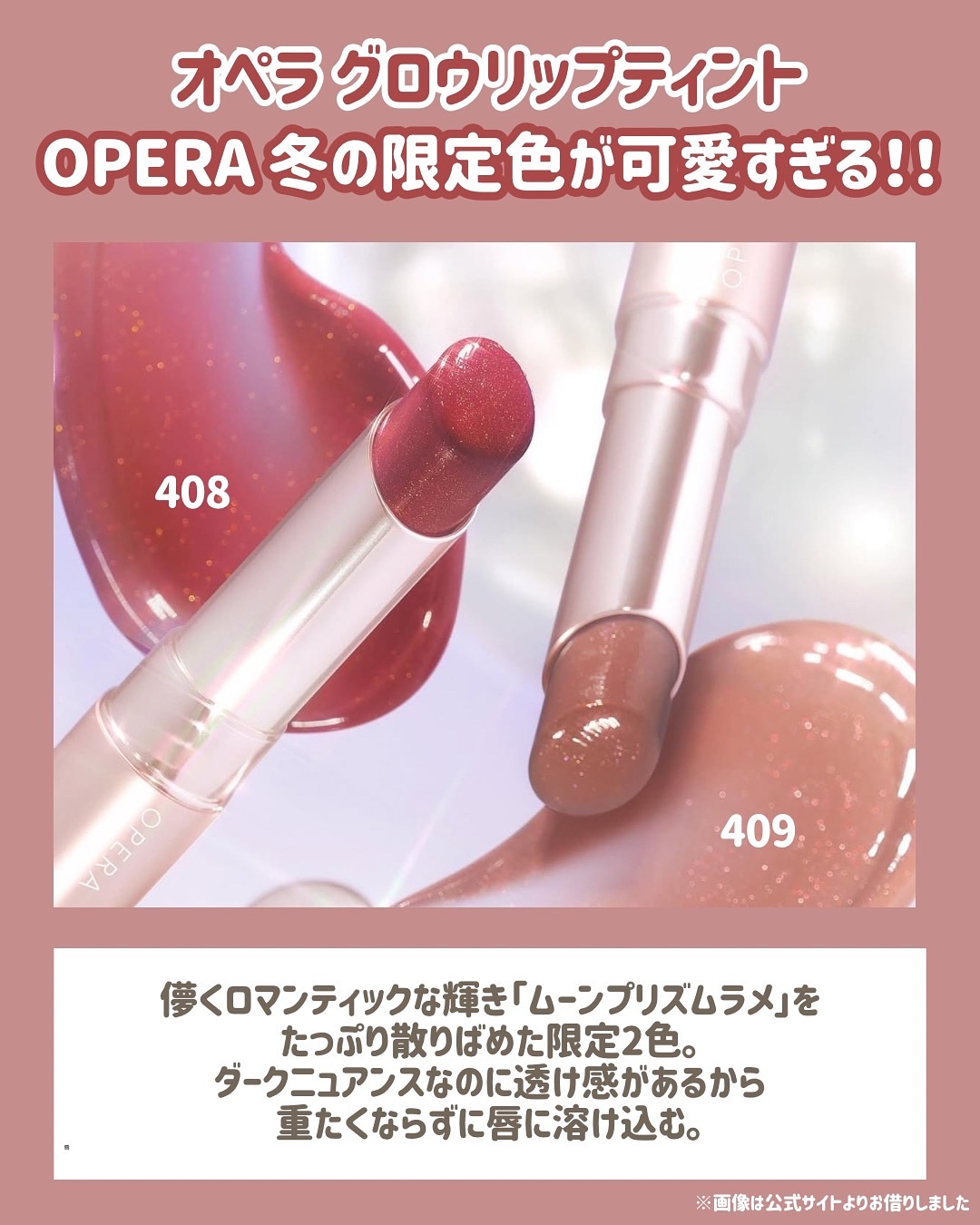 .OPERA冬の限定色ダークなメロリップ🌙♥️..11月12日(水)発売のOPERAの冬の限定色が"透ける深みカラー"×"ちゅるきらムーンプリズムラメ"で季節感たっぷりで可愛すぎた...!!🥹❤️..#OPERA#オペラ#グロウリップティント...
