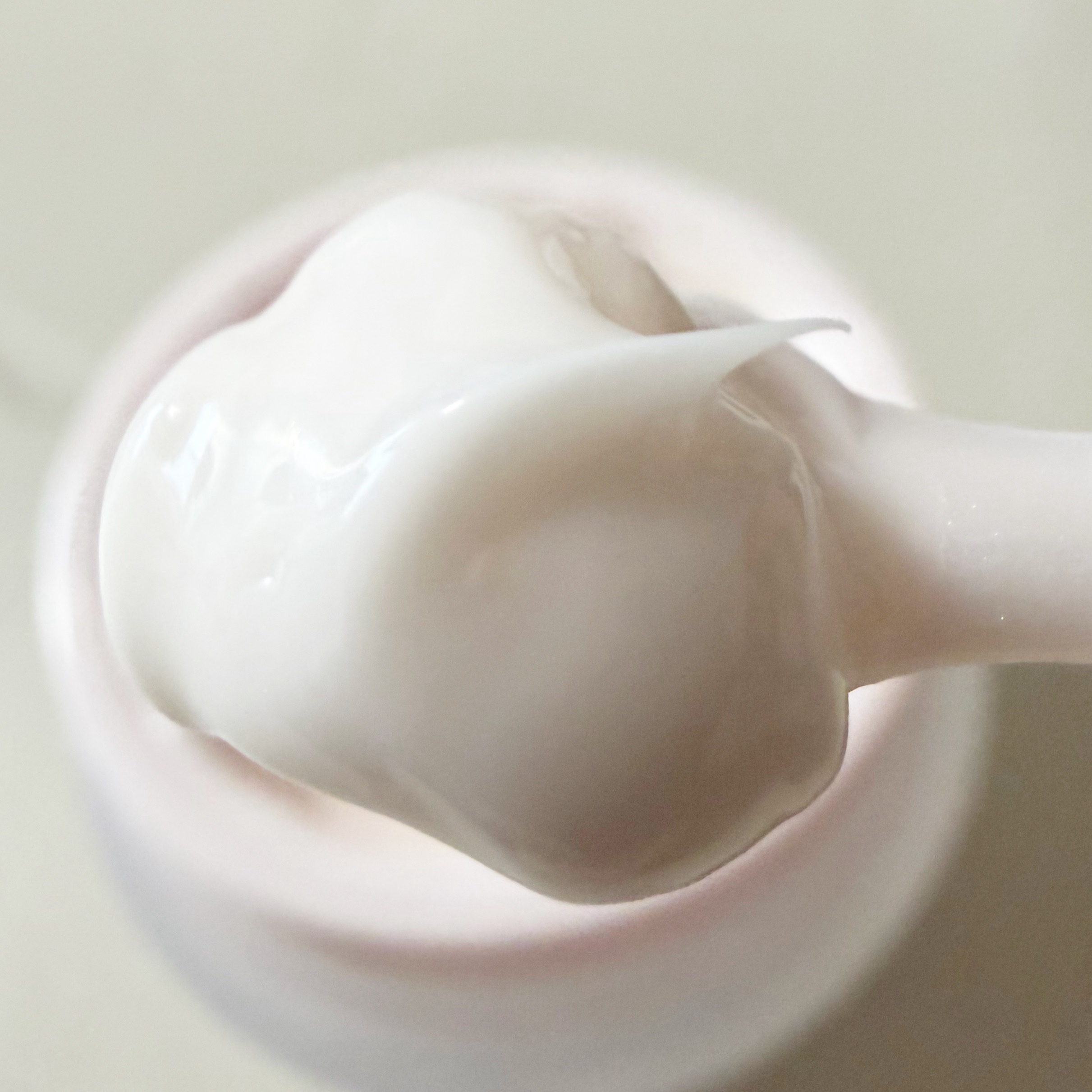 今話題のアゼライン酸*が20%も配合されているそうです。毛穴詰まりを解消、皮脂の分泌を抑制、抗菌、抗酸化、メラニンの生成を抑制などの効果があって、刺激の少ない天然成分。 やわらかめなテクスチャーの真っ白なクリームで、少量でものびが良く、付けた後がベタつかないのでほかのスキンケアとも相性良く使うことができています。 肌の水分と油分のバランスを整える効果もあるので、朝に使用するとメイク崩れも防いでくれるとか。