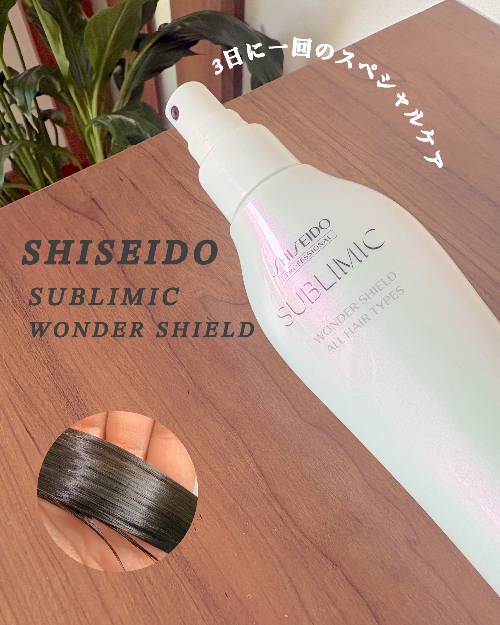 - <洗い流さないトリートメント> 3日に1 回、自宅でご使用いただくスペシャルケア。 見えないシールドで髪を包み込み、サロンで仕上げた、なめらかな髪を長く持続させます。