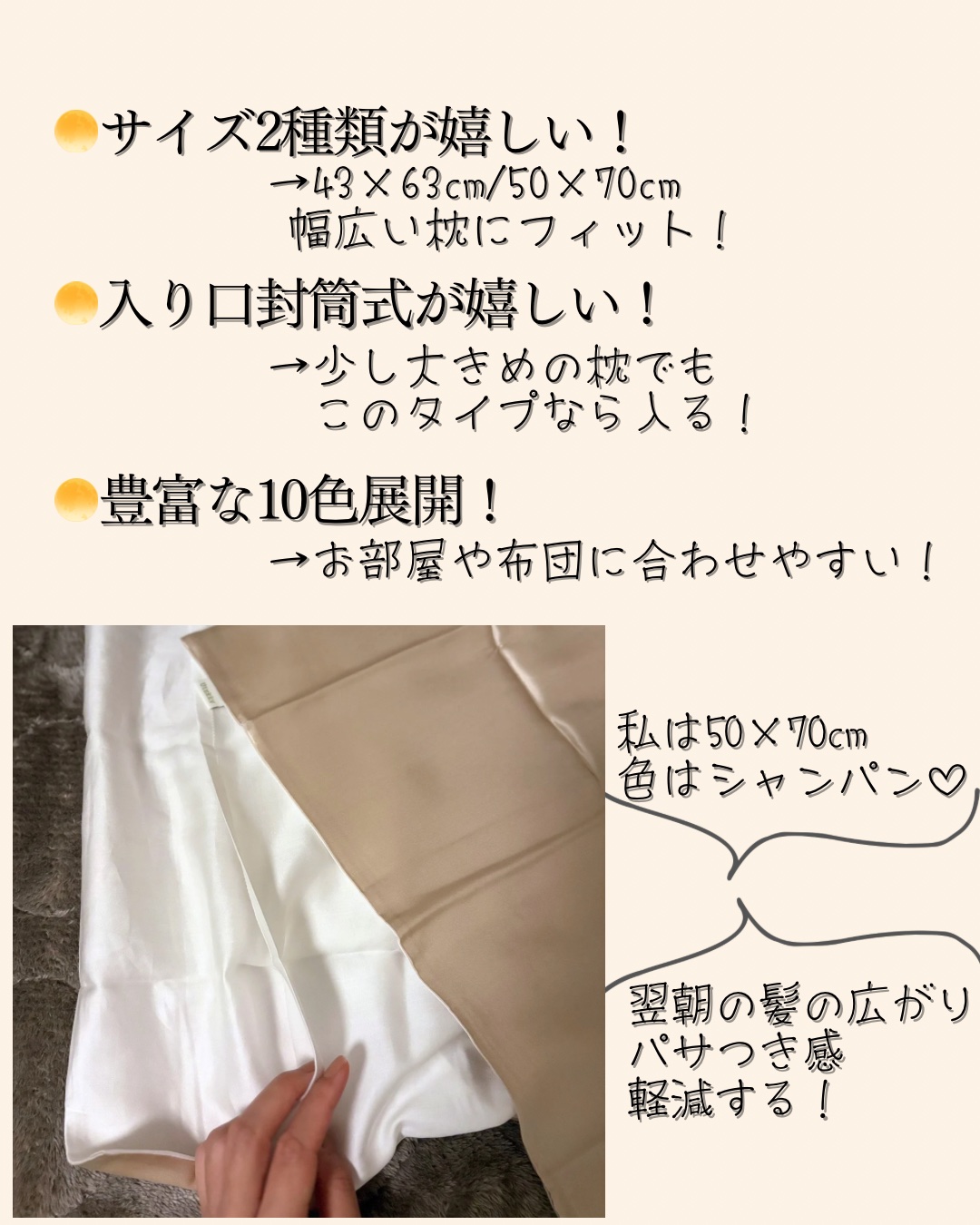 @utukky_japan様からご提供いただきました✨ありがとうございます✨.:▪️Utukky▪️シルクまくらカバー「シルクと寝る、みちがえる」人間の肌に近い18種類のアミノ酸から構成された天然素材のシルクCOLORシャンパン(全12種類)...