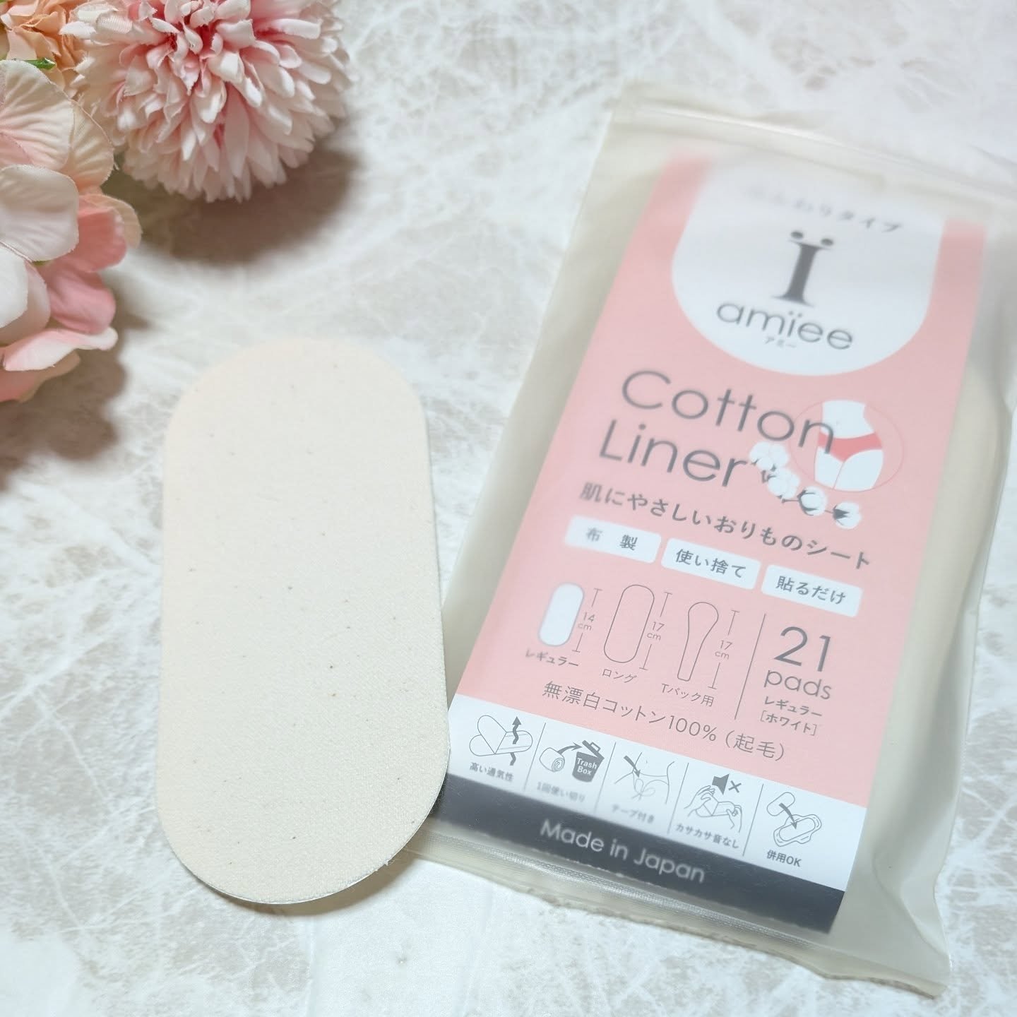 ..▶︎amiee コットンライナー(ホワイト/レギュラー)21枚 コットンライナー(ホワイト/ロング)21枚これは女性に是非知って欲しいアイテム😍「普段」も「生理」のときも活躍してくれる「ズレ防止テープ付き」の使い捨て布ナプキン・おりものシ...