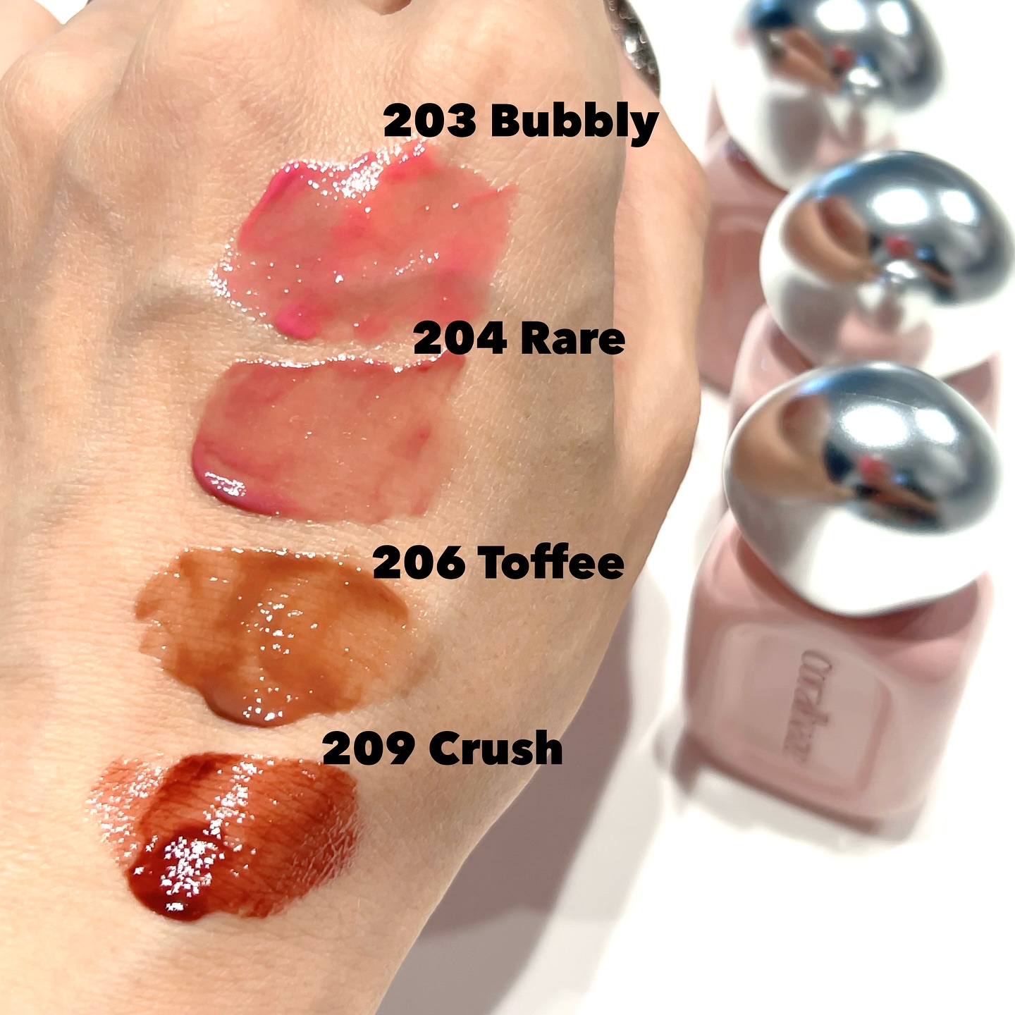 - <201 フェアリー> ダイマージリノール酸ジイソステアリル、ジフェニルシロキシフェニルトリメチコン、ビスジグリセリルポリアシルアジペート-2、水、ジフェニルジメチコン、水添ポリイソブテン、セチルPEG/PPG-10/1ジメチコン、ポリソルベート60、ペンチレングリコール、グリセリン、イソステアリン酸ポリグリセリル-4、フェノキシエタノール、1,2-ヘキサンジオール、セテアレス-20、酸化チタン (CI 77891)、(アクリル酸ヒドロキシエチル/アクリロイルジメチルタウリンNa)コポリマー、ステビオシド、スクワラン、香料、ジラウラミドグルタミドリシンNa、エチルヘキシルグリセリン、エチレンジアミンジコハク酸3Na、赤色227号 (CI 17200)、水酸化Al、黄色5号 (CI 15985)、ポリアクリル酸アンモニウム、イソステアリン酸ソルビタン、黄色4号 (CI 19140)、BG、赤色223号 (CI 45410)、青色1号 (CI 42090)、アラントイン、パンテノール、ツボクサエキス、ヒアルロン酸、加水分解ヒアルロン酸、ヒアルロン酸Na <203 バブリー> ダイマージリノール酸ジイソステアリル、ジフェニルシロキシフェニルトリメチコン、ビスジグリセリルポリアシルアジペート-2、水、ジフェニルジメチコン、水添ポリイソブテン、セチルPEG/PPG-10/1ジメチコン、ポリソルベート60、ペンチレングリコール、グリセリン、イソステアリン酸ポリグリセリル-4、フェノキシエタノール、1,2-ヘキサンジオール、セテアレス-20、(アクリル酸ヒドロキシエチル/アクリロイルジメチルタウリンNa)コポリマー、ステビオシド、酸化チタン (CI 77891)、スクワラン、香料、ジラウラミドグルタミドリシンNa、エチルヘキシルグリセリン、赤色227号 (CI 17200)、エチレンジアミンジコハク酸3Na、黄色5号 (CI 15985)、イソステアリン酸ソルビタン、水酸化Al、ポリアクリル酸アンモニウム、黄色4号 (CI 19140)、BG、青色1号 (CI 42090)、アラントイン、パンテノール、ツボクサエキス、ヒアルロン酸、加水分解ヒアルロン酸、ヒアルロン酸Na <204 レア> ダイマージリノール酸ジイソステアリル、ジフェニルシロキシフェニルトリメチコン、ビスジグリセリルポリアシルアジペート-2、水、ジフェニルジメチコン、水添ポリイソブテン、セチルPEG/PPG-10/1ジメチコン、ポリソルベート60、ペンチレングリコール、グリセリン、イソステアリン酸ポリグリセリル-4、フェノキシエタノール、1,2-ヘキサンジオール、セテアレス-20、(アクリル酸ヒドロキシエチル/アクリロイルジメチルタウリンNa)コポリマー、酸化チタン (CI 77891)、ステビオシド、スクワラン、香料、ジラウラミドグルタミドリシンNa、エチルヘキシルグリセリン、赤色227号 (CI 17200)、黄色5号 (CI 15985)、エチレンジアミンジコハク酸3Na、イソステアリン酸ソルビタン、水酸化Al、ポリアクリル酸アンモニウム、黄色4号 (CI 19140)、青色1号 (CI 42090)、BG、アラントイン、パンテノール、ツボクサエキス、ヒアルロン酸、加水分解ヒアルロン酸、ヒアルロン酸Na <205 ハニーデュー> ダイマージリノール酸ジイソステアリル、ジフェニルシロキシフェニルトリメチコン、ビスジグリセリルポリアシルアジペート-2、水、ジフェニルジメチコン、水添ポリイソブテン、セチルPEG/PPG-10/1ジメチコン、ポリソルベート60、ペンチレングリコール、グリセリン、イソステアリン酸ポリグリセリル-4、フェノキシエタノール、1,2-ヘキサンジオール、セテアレス-20、(アクリル酸ヒドロキシエチル/アクリロイルジメチルタウリンNa)コポリマー、酸化チタン (CI 77891)、ステビオシド、スクワラン、香料、ジラウラミドグルタミドリシンNa、エチルヘキシルグリセリン、赤色227号 (CI 17200)、黄色5号 (CI 15985)、エチレンジアミンジコハク酸3Na、イソステアリン酸ソルビタン、水酸化Al、ポリアクリル酸アンモニウム、黄色4号 (CI 19140)、青色1号 (CI 42090)、BG、アラントイン、パンテノール、ツボクサエキス、ヒアルロン酸、加水分解ヒアルロン酸、ヒアルロン酸Na <206 トフィー> ダイマージリノール酸ジイソステアリル、ジフェニルシロキシフェニルトリメチコン、ビスジグリセリルポリアシルアジペート-2、水、ジフェニルジメチコン、水添ポリイソブテン、セチルPEG/PPG-10/1ジメチコン、ポリソルベート60、ペンチレングリコール、グリセリン、イソステアリン酸ポリグリセリル-4、フェノキシエタノール、1,2-ヘキサンジオール、セテアレス-20、(アクリル酸ヒドロキシエチル/アクリロイルジメチルタウリンNa)コポリマー、ステビオシド、スクワラン、香料、ジラウラミドグルタミドリシンNa、酸化チタン (CI 77891)、エチルヘキシルグリセリン、黄色5号 (CI 15985)、エチレンジアミンジコハク酸3Na、黄色4号 (CI 19140)、赤色227号 (CI 17200)、イソステアリン酸ソルビタン、赤色223号 (CI 45410)、青色1号 (CI 42090)、水酸化Al、ポリアクリル酸アンモニウム、BG、アラントイン、パンテノール、ツボクサエキス、ヒアルロン酸、加水分解ヒアルロン酸、ヒアルロン酸Na <207 フレイム> ダイマージリノール酸ジイソステアリル、ジフェニルシロ