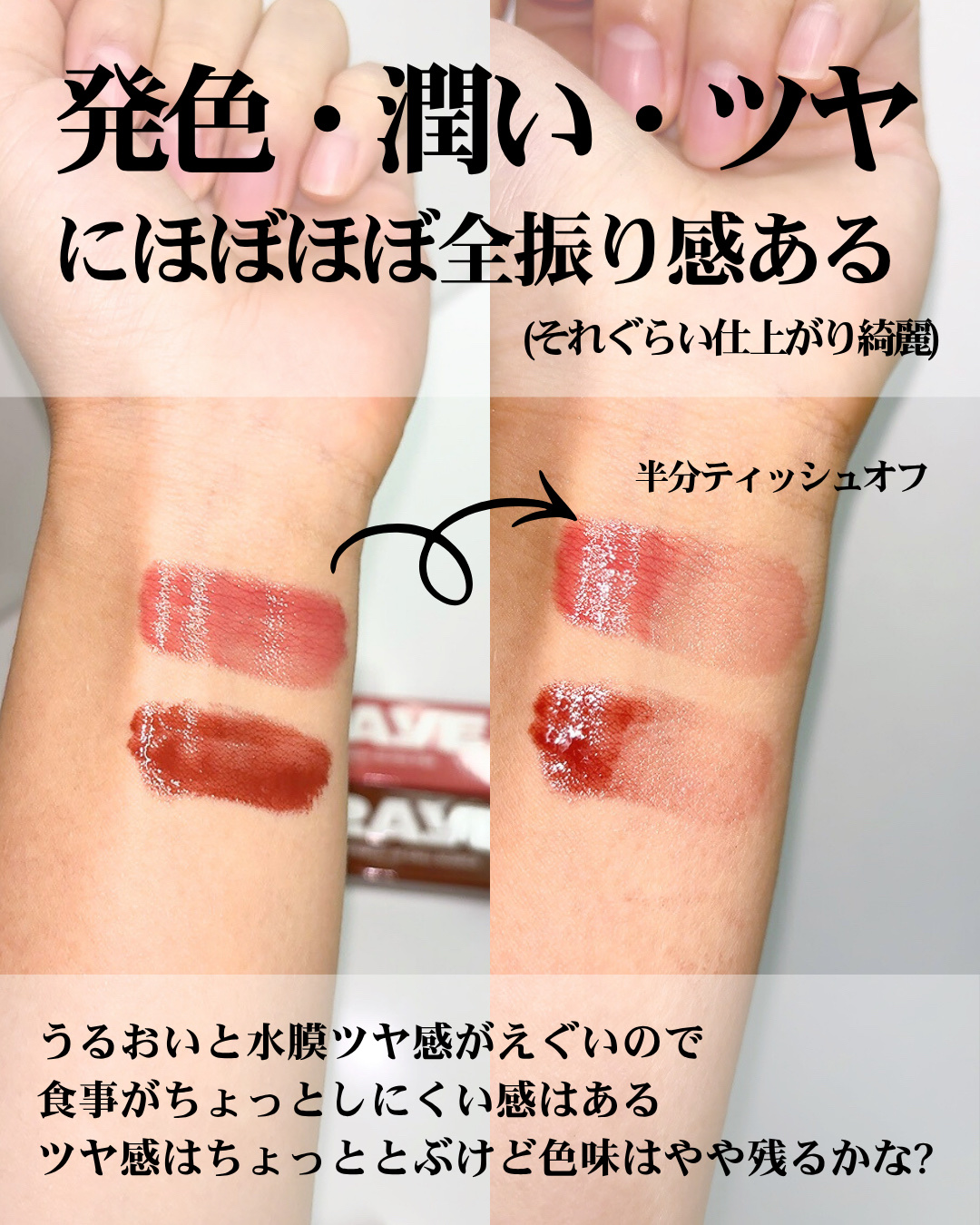 | リップでは程よい艶感と唇のぷるっと感が演出出来たし、 チークではじゅわっとほっぺ感が可愛すぎた | 詳細を見る | |