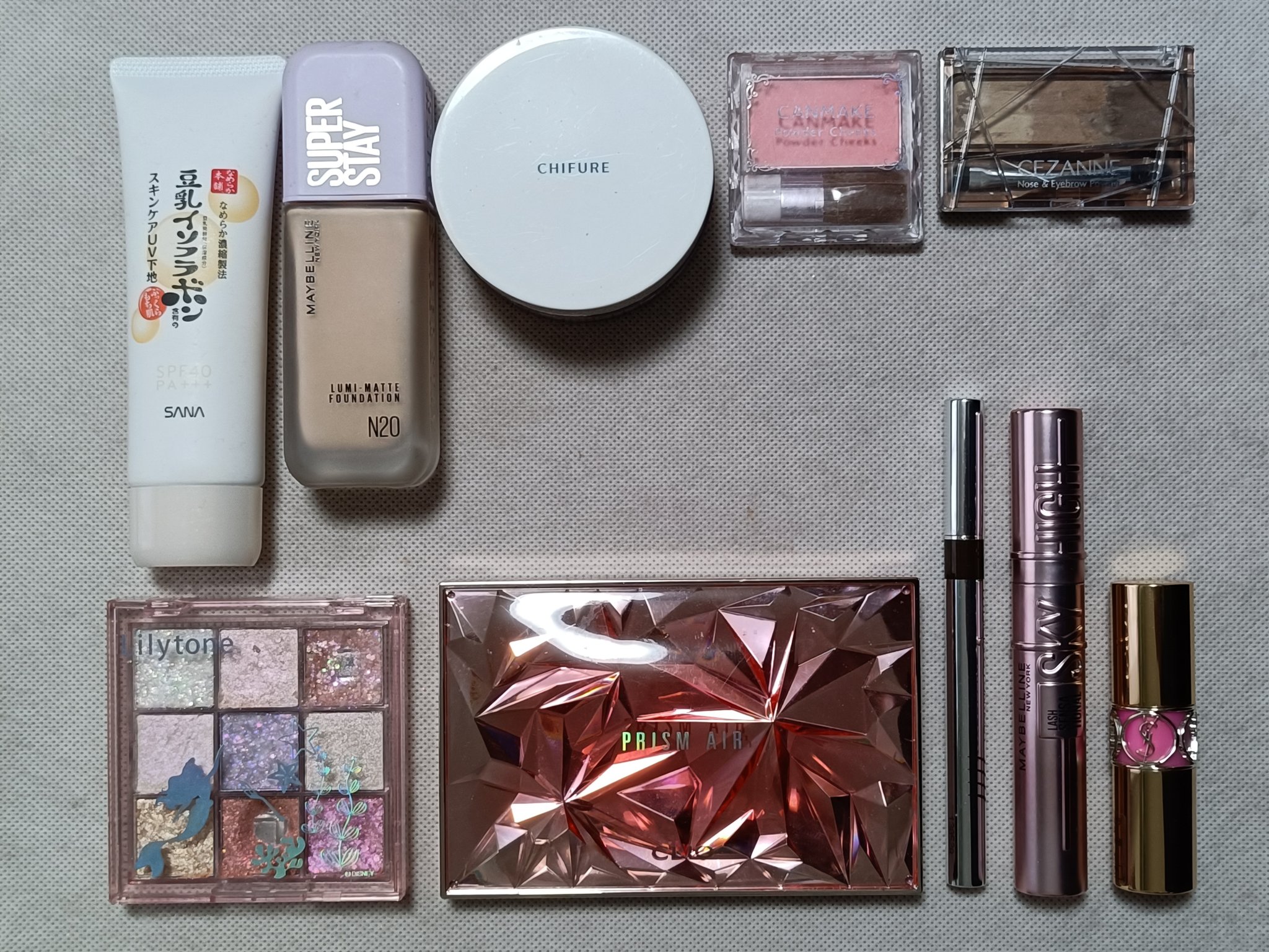 アリィー ニュアンスチェンジUV ジェル RSを、顔全体にまんべんなく塗ります。 RMK RMK ジェルクリーミィファンデーション 103を、顔全体にまんべんなく塗ります。 ジョンソンベビー ジョンソン ベビーパウダーを、顔全体にまんべんなく軽くはたきます。 THE BODY SHOP bronze shade warm glowを、両頬に塗ります。 KATE リフレクトミラーアイズ BR-1の締め色を、眉毛全体にまんべんなく塗ります。 URGLAM UR GLAMBLOOMING EYE COLOR PALETTE 01を、使用しました。 ちふれ リキッド アイライナー 筆ペンタイプ BK30 ブラックを、塗ります。 CEZANNE エアリーカールマスカラを、まつ毛全体にまんべんなく塗ります。 MAYBELLINE NEW YORK コロッサルボリュームエクスプレスを、まつ毛全体にまんべんなく塗ります。 MAYBELLINE NEW YORK SPステイ マットインク 135を、唇全体にまんべんなく塗ります。