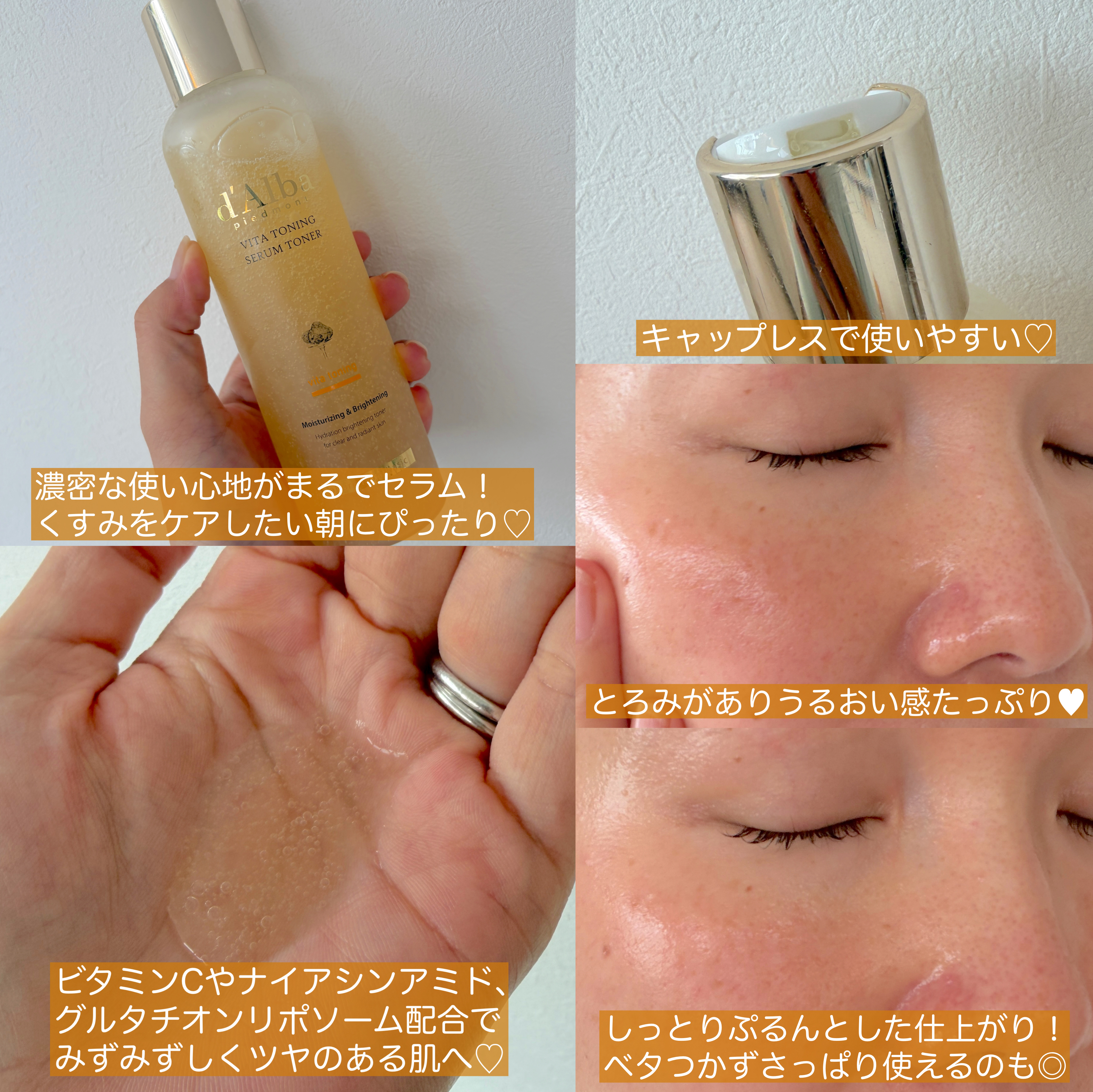 肌を整えてうるツヤ肌💛d´Albaビタトーニングセラムトナー肌キメ・角質・毛穴までケア💐ビタミンC、グルタチオン、ナイアシンアミド配合美白ケアもできちゃう欠点がない化粧水💛美容液みたいに濃密でみずみずしいテクスチャー肌なじみが良くて、しっとり...
