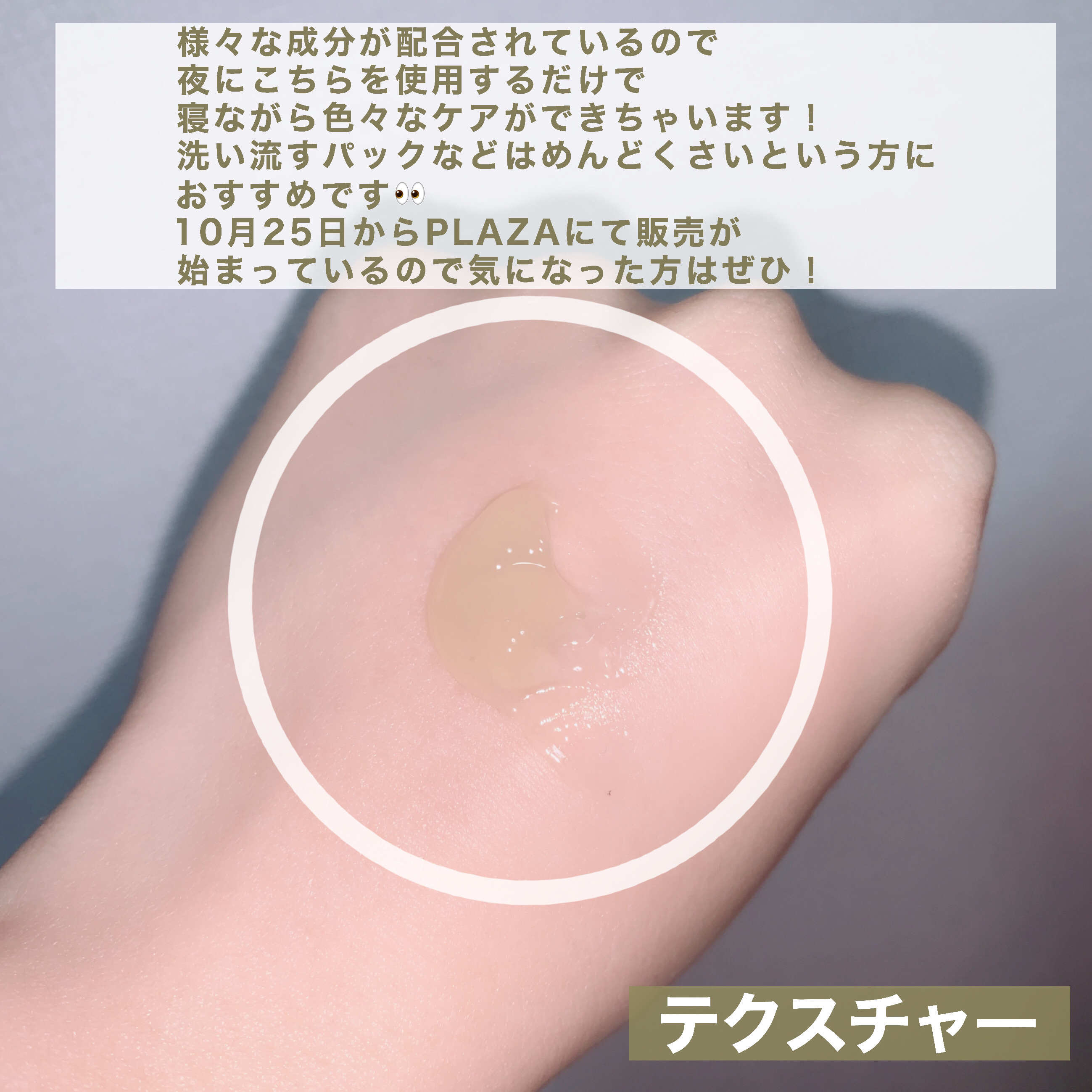 - ①輝くような肌印象へ導く、純粋ビタ処方 [遮断型ビタミンB3*] [明るい印象を保つビタミンB2*] [クリアビタミンC*] ②高純度×高密着 スリーピングケア ~Micro Pure C~ マイクロパウダー技術 イギリス産純粋ビタミンC*がベースに均一に溶け込んだ高純度フォーミュラ 合成着色料不使用、天然ユズの色そのまま。 乾燥くすみをケアする天然ユズ果皮オイル* 自然由来のやさしい色合いで、 肌に色残りすることなく使えます。 ③夜の集中ケアで肌印象すっきり ツボクサ3種*配合 マデカシン酸*:肌バリア保護 アジアチコ酸*:乾燥くすみケア アジアチコシド*:肌リズムサポート ぷるんとした濃密な”ぷるぷるプリン”テクスチャーが、夜のあいだ肌にしっかり密着し、もっちりとしたハリ感が続きます。 *保湿成分