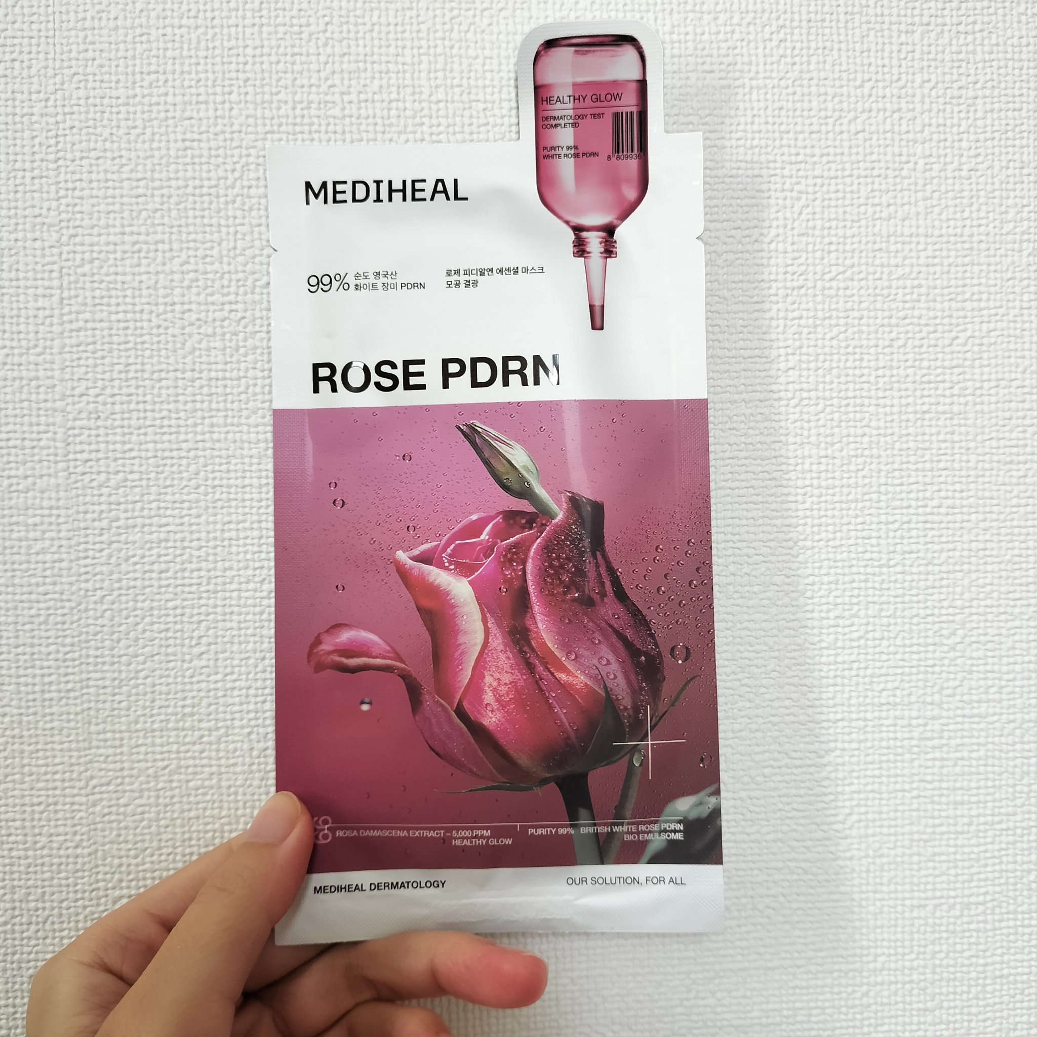 MEDIHEAL(メディヒール)ローゼPDRNエッセンシャルマスクポアツヤ毛穴やハリツヤ感悩みのある方におすすめ🌹動物性PDRNより粒子が細かいイギリス産ローズPDRNが配合されているそうです!📝使ってみた感想ローズの香りがふわっと香るのも気...