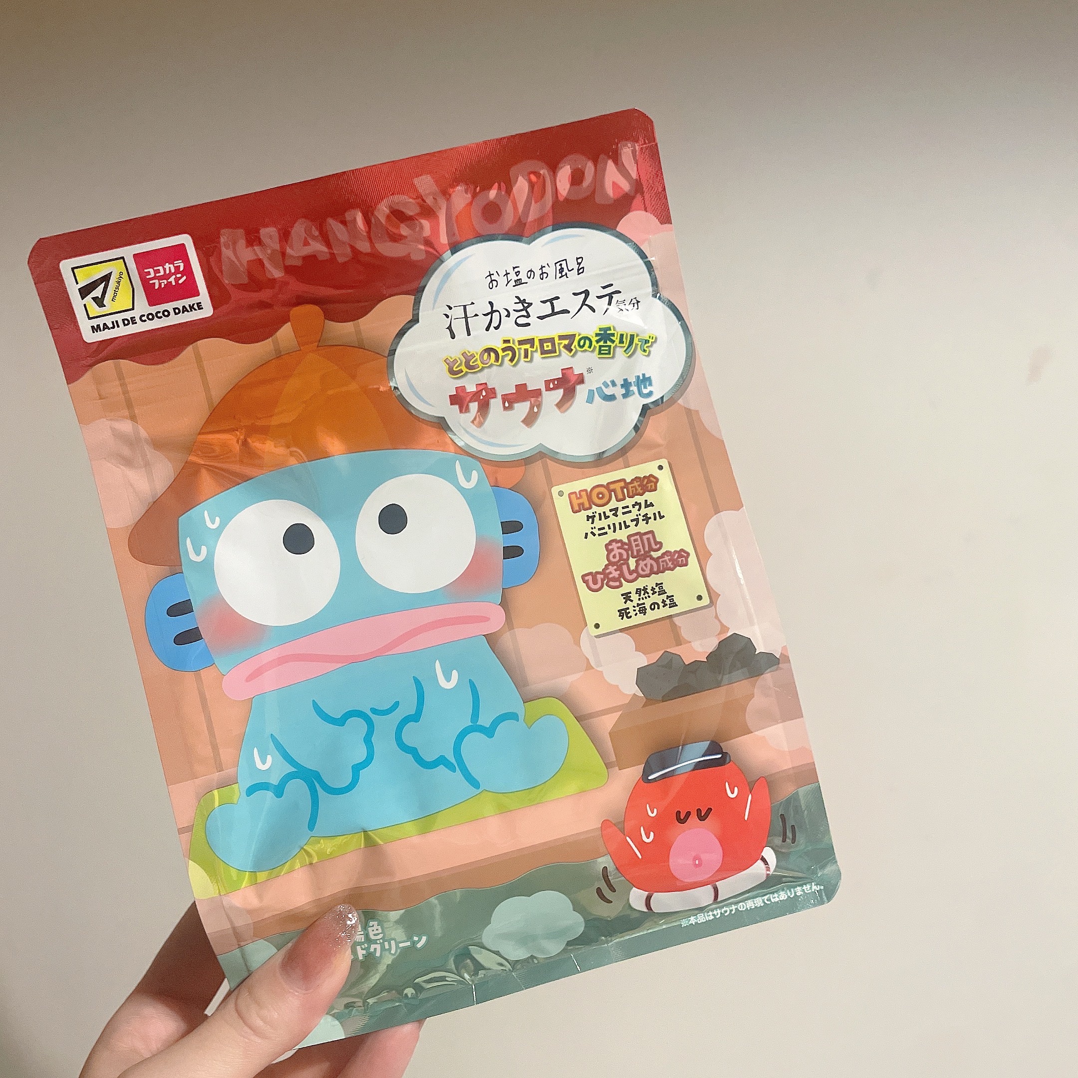 可愛いすぎる入浴剤🫧マツキヨとココカラファイン限定みたい🤔湯色はエメラルドグリーンでスプーン三杯分🥄お風呂から出ると身体ポカポカ☺️🛁💚#汗かきエステ気分#ハンギョドン#入浴剤...