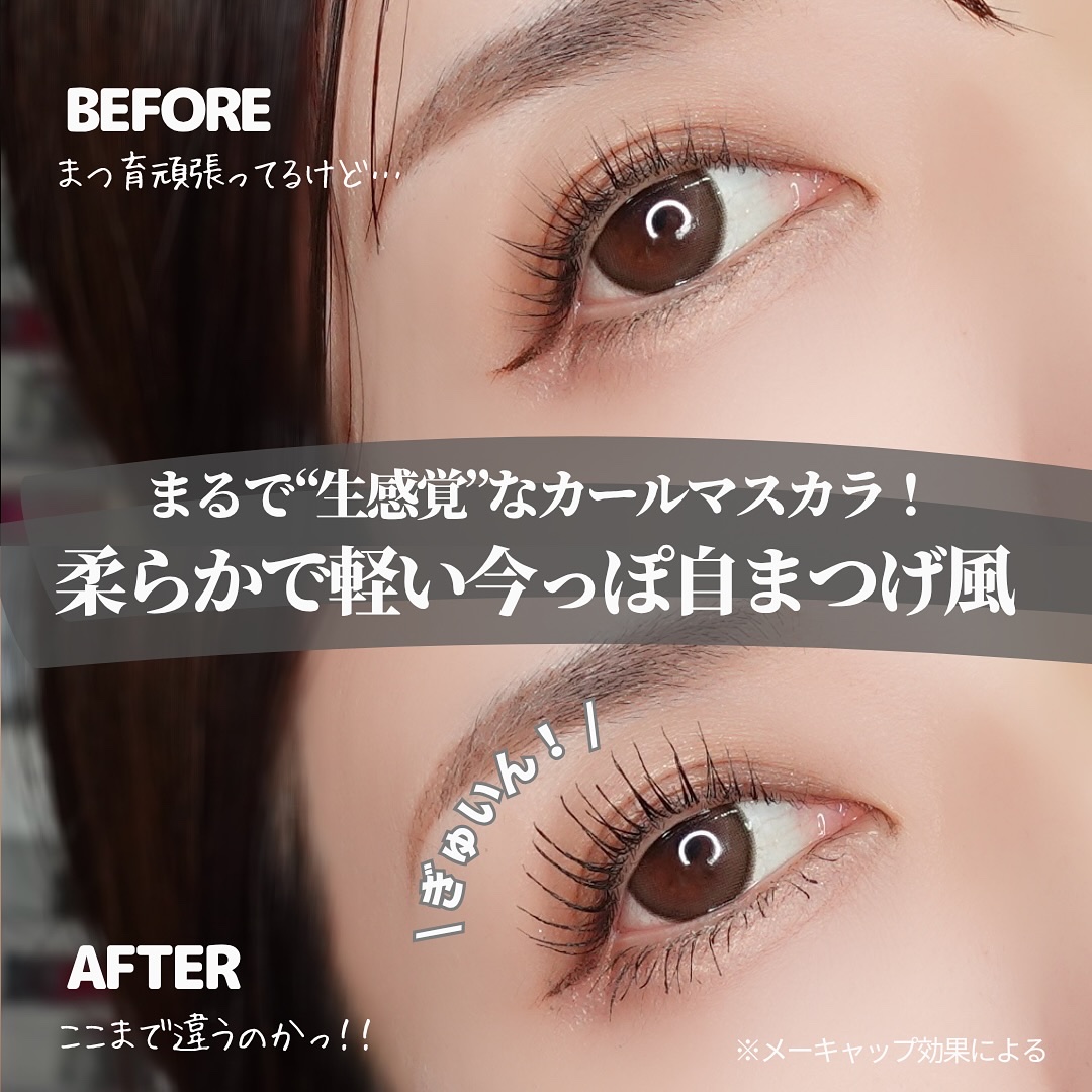 - 驚くほどの軽さと柔らかさを実現した、新感覚マスカラが誕生! 「まるで生感覚カールマスカラ」 自まつ毛みたいなツヤ感と柔らかさ。 驚くほど軽いのに、長時間カールキープが叶う*マスカラです。 ●ダマになりにくく、ツヤんと柔らかい仕上がり ●長時間カールキープ* ●自まつ毛風ナチュラルロング ●ウォータープルーフ×こすれプルーフ ●まつ毛1本1本にしっかり絡むマイクロキャッチブラシ ●お湯で落ちる処方 *当社調べ。効果には個人差があります。