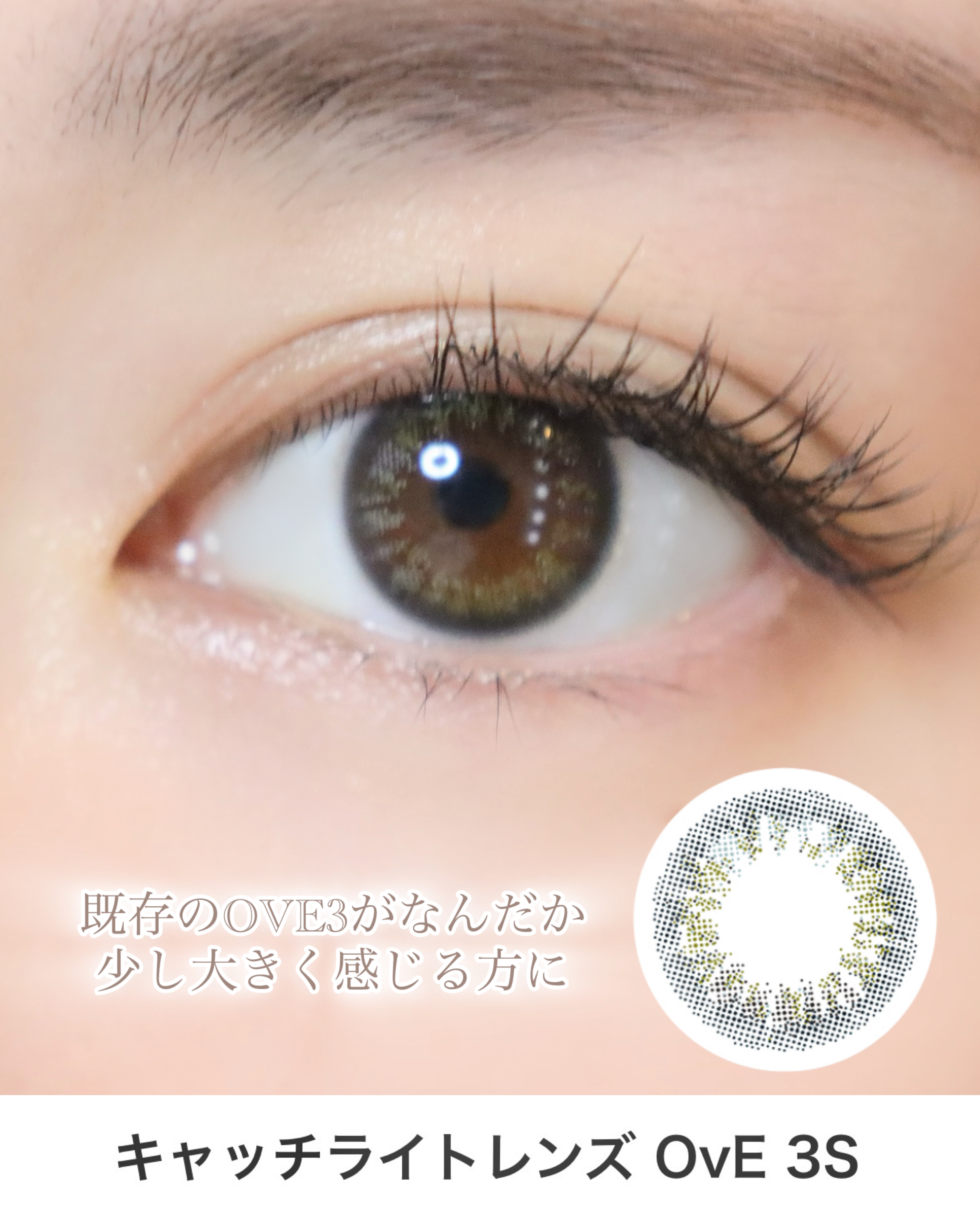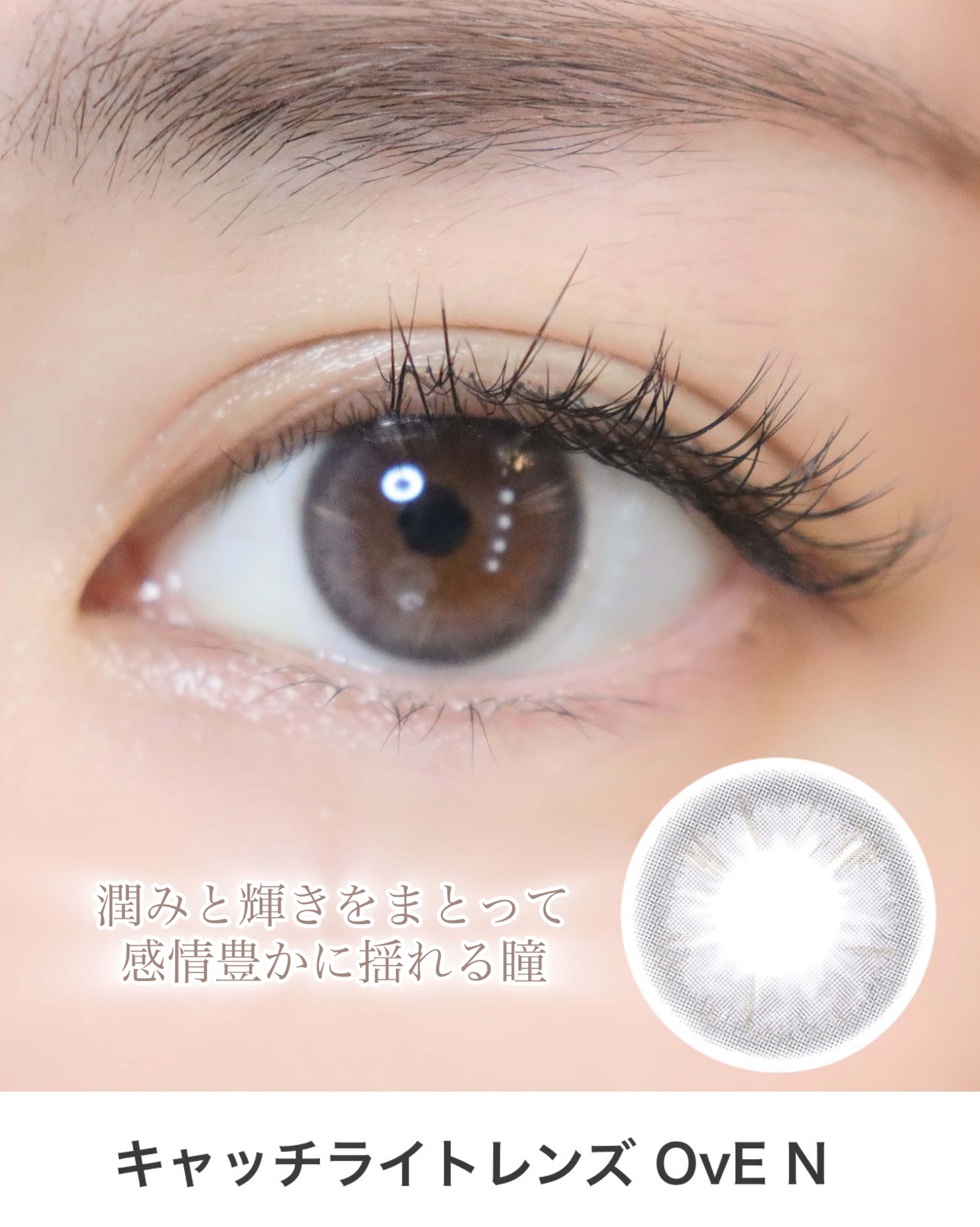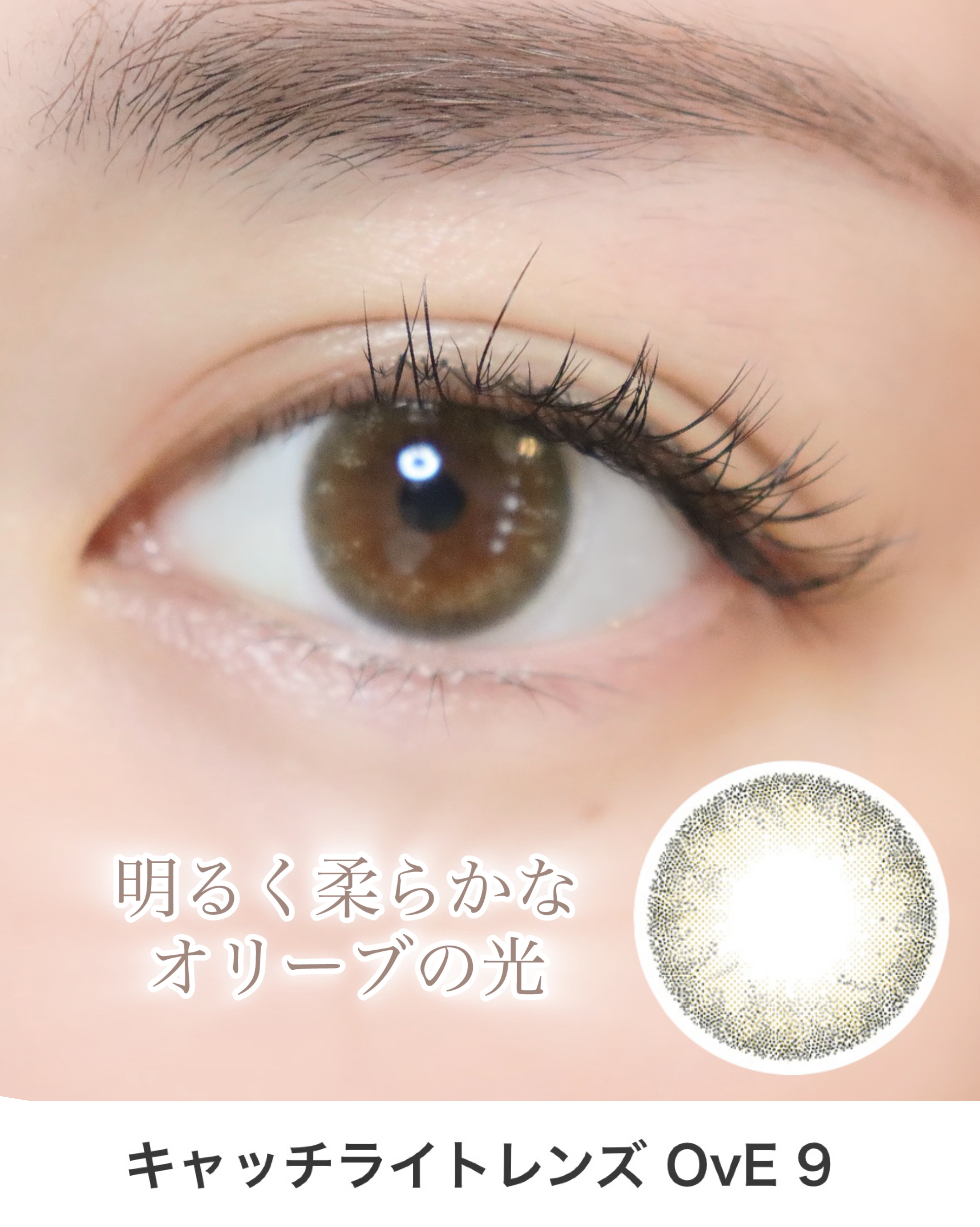 - 「左右⾮対称なデザイン」で「本来の⾃分の瞳の輝きを⽣かす」「⾊」ではなく、瞳に⼊る「光」を再現した今までとは異なる発想のこだわりデザインレンズ ⿊⽬を⼤きく、瞳を⾊付けることを⽬的とした従来のカラーコンタクトレンズとは異なる発想で、瞳の中でキラキラと輝く光を表現し、透明感と潤いに溢れた瞳を実現。 繊細な⾊合いとそれを左右⾮対称に配したデザインによって、柔らかく朗らかな印象を⾃然に演出します。 発光するような瞳は、視線を集めるので⼩顔感も期待できます。 着色直径 6:12.1mm、1~4,6,7:13.0mm、5,8:14.0mm 直径(DIA) 6:14.0mm、1~4,6,7:14.2mm、5,8:14.5mm ベースカーブ 1~5,7,8:8.6mm、6:8.7mm 度数 0.00、-0.50D〜-10.00D 含⽔率 38%